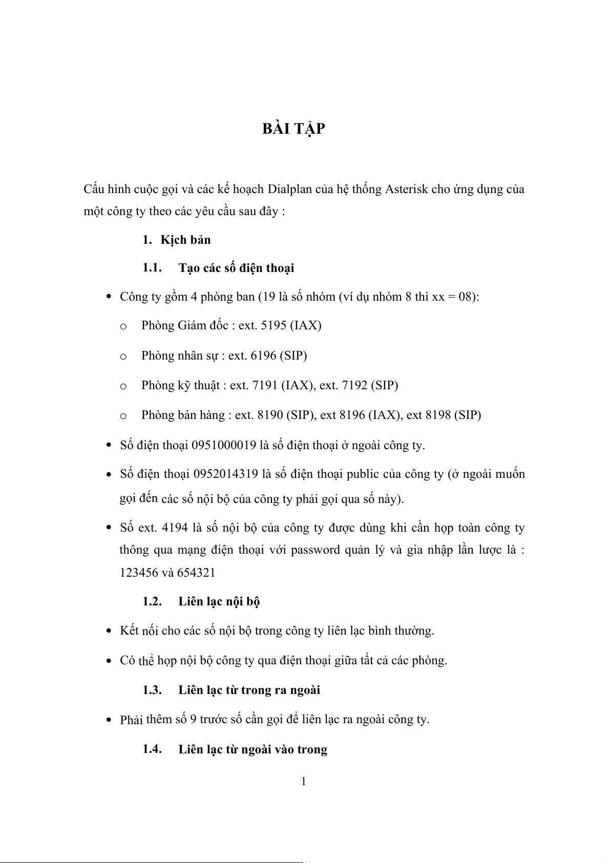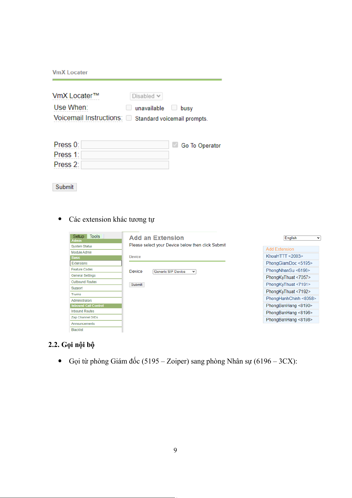 Phòng kỹ thuật : ext. 7191 (IAX), ext. 7192 (SIP) o