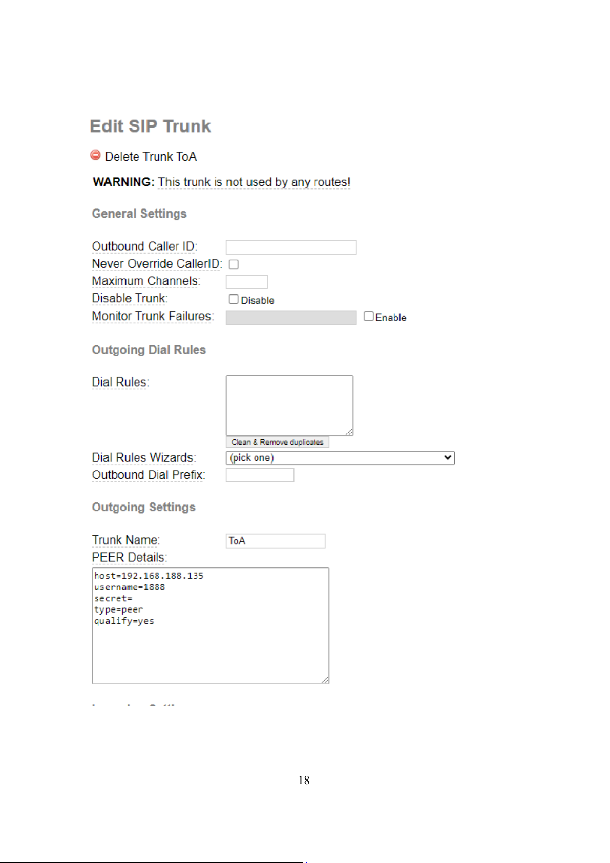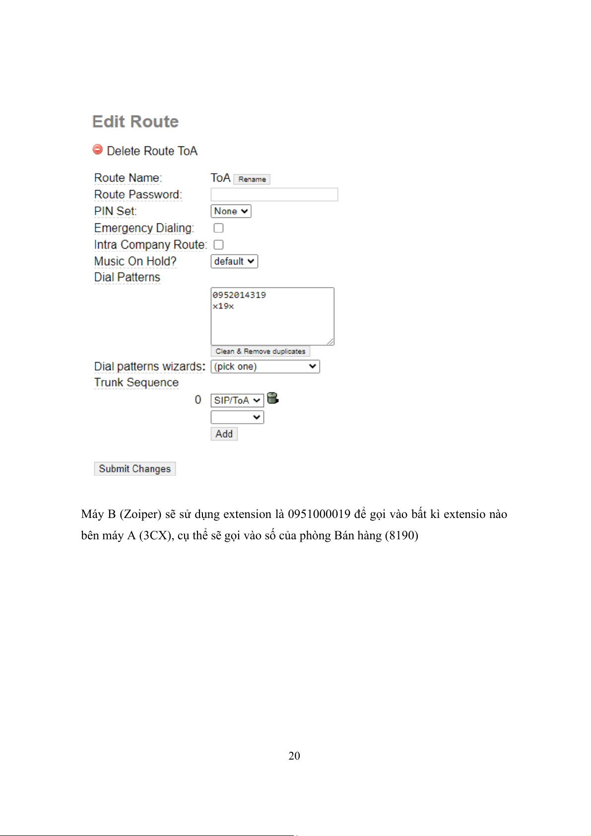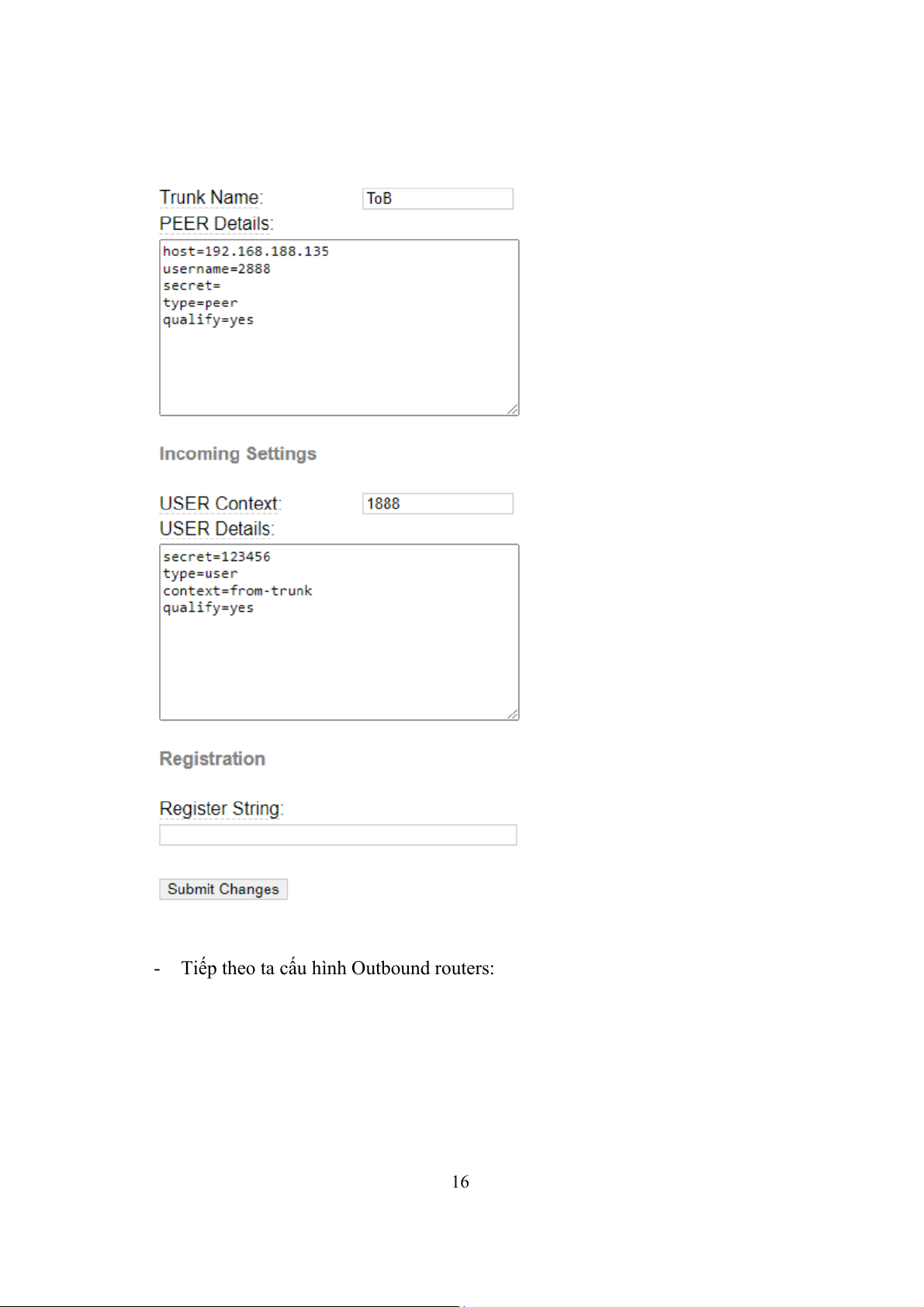 - Cấu hình Trunk bên máy B, Trunk Name là ToA. 17 18