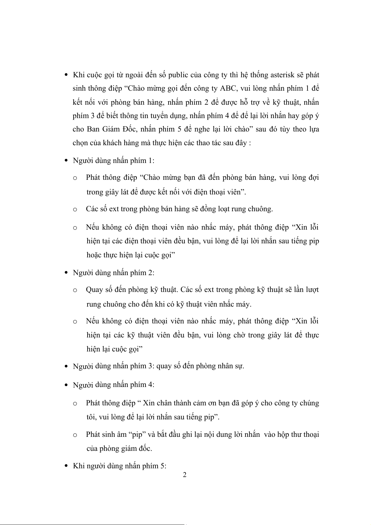 sinh thông điệp “Chào mừng gọi đến công ty ABC, vui lòng nhấn phím 1 để