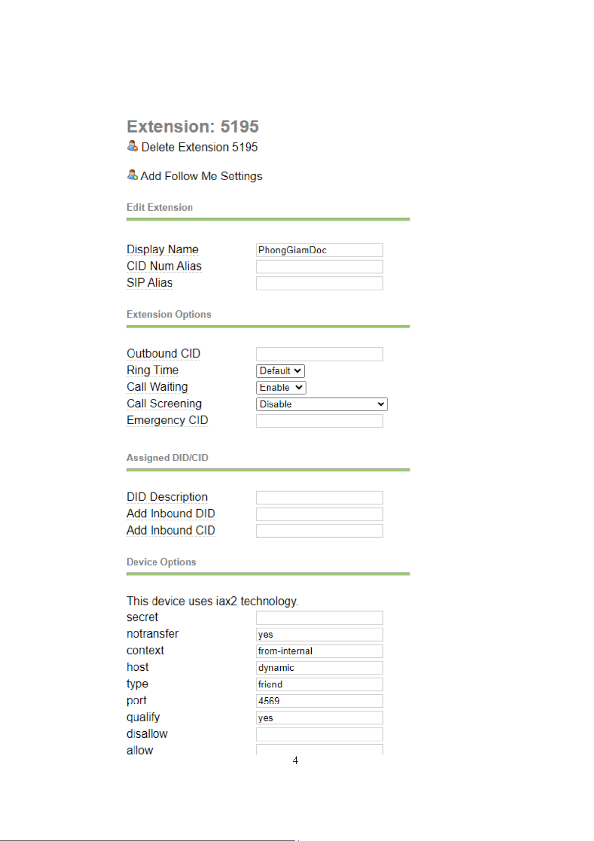Tạo extension phòng Giám đốc sử dụng giao thức IAX 3 4 5
