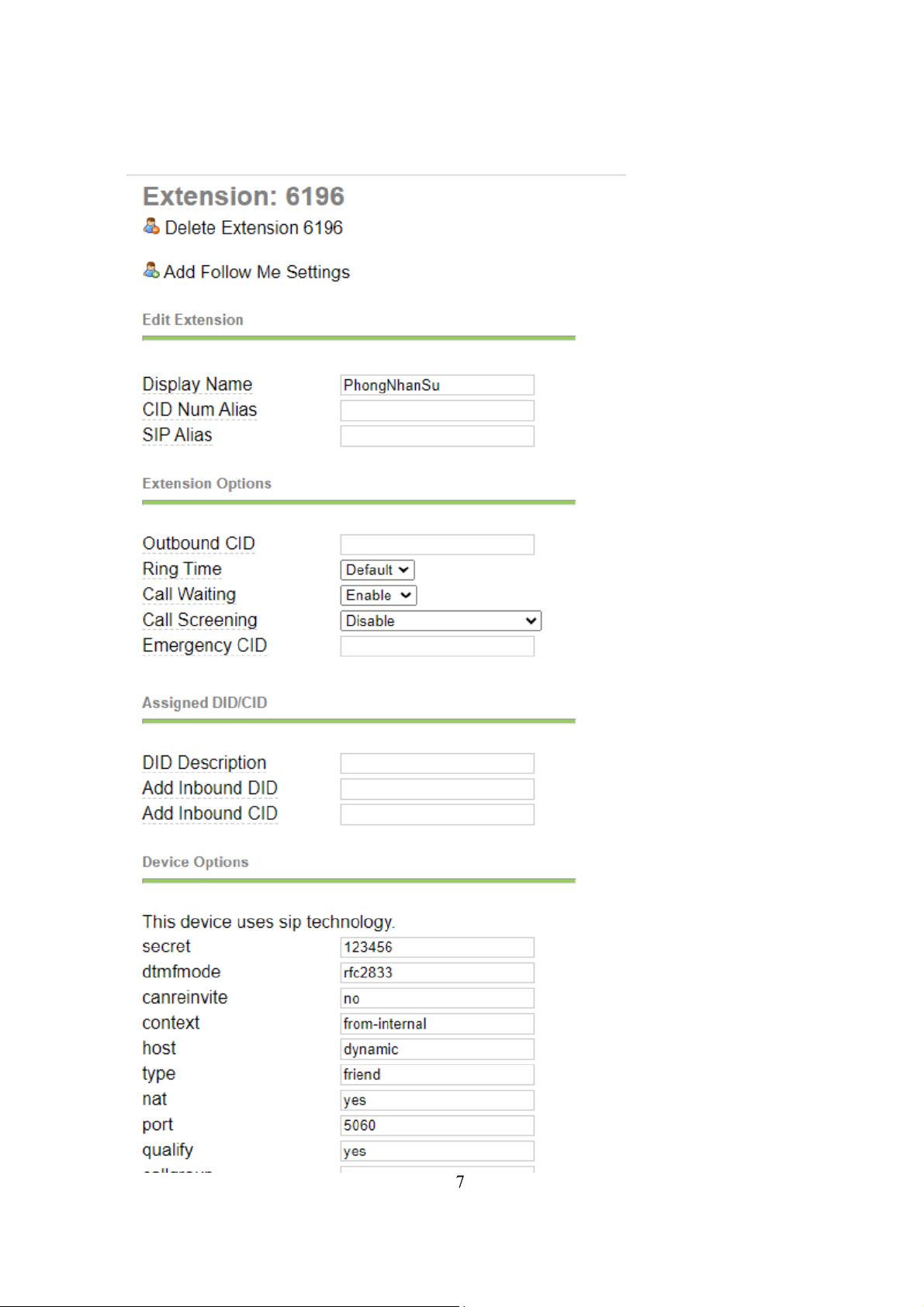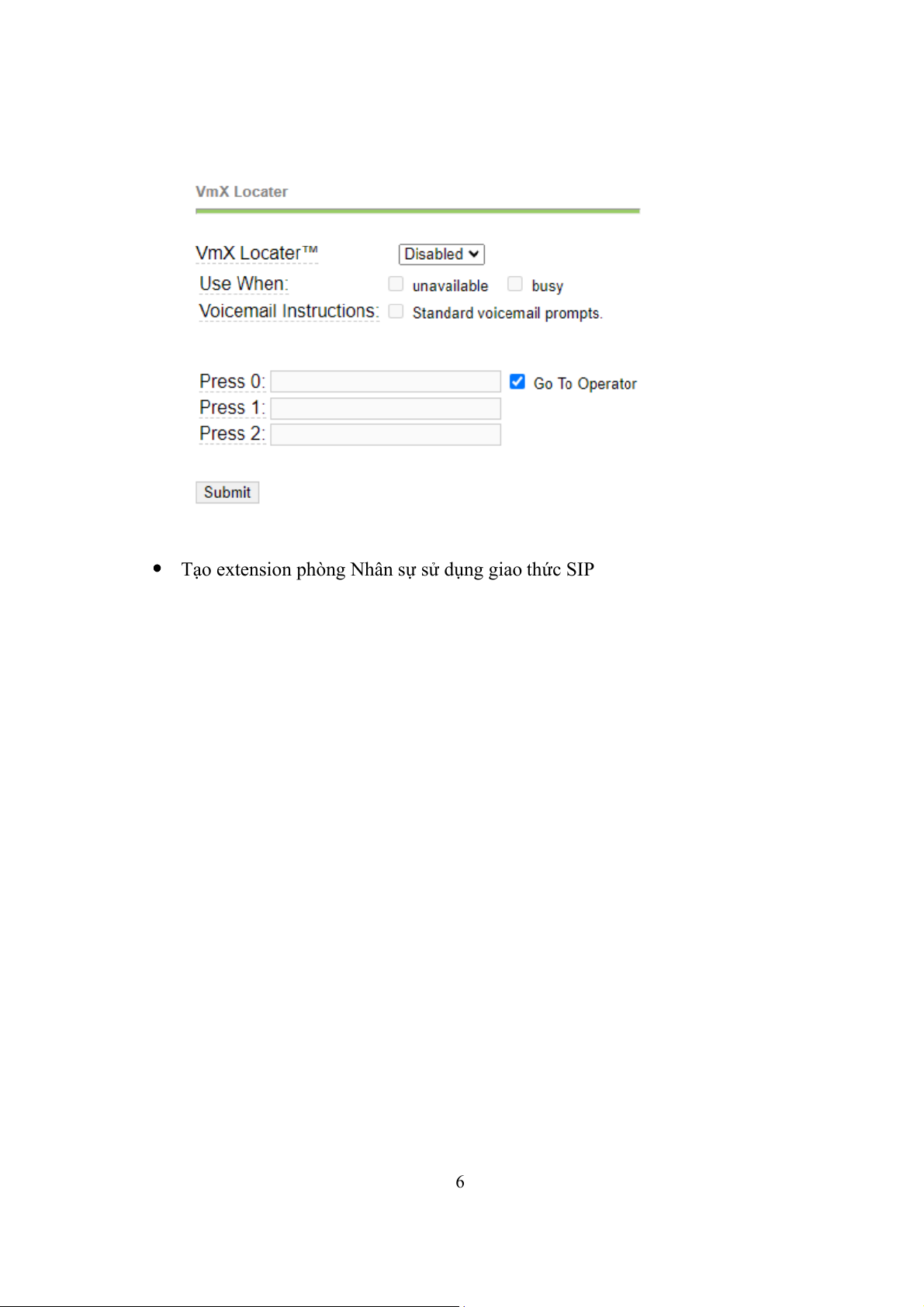 Tạo extension phòng Nhân sự sử dụng giao thức SIP 6 7 8