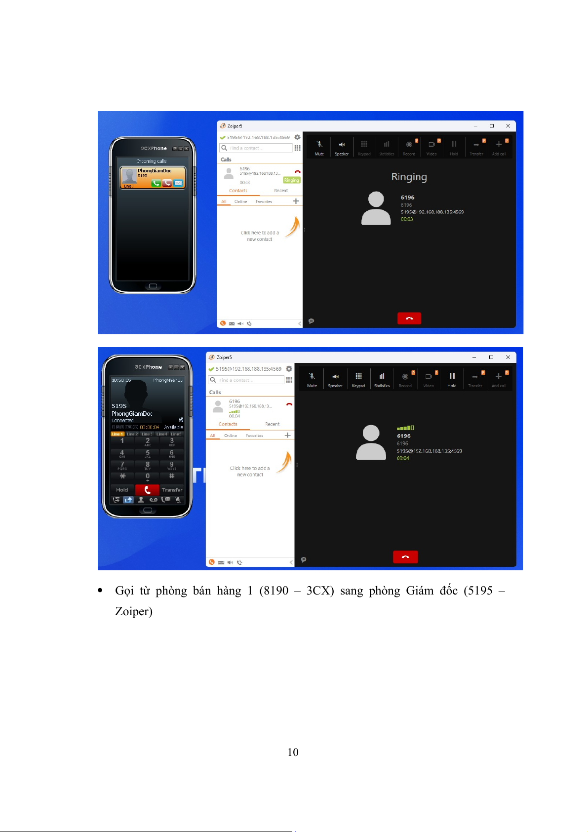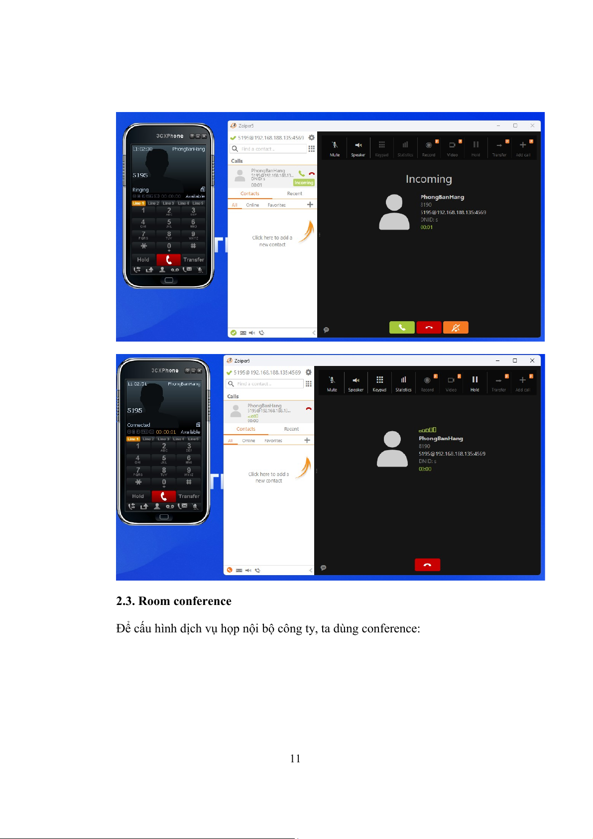 Gọi từ phòng bán hàng 1 (8190 – 3CX) sang phòng Giám đốc (5195 – Zoiper) 10 2.3. Room conference