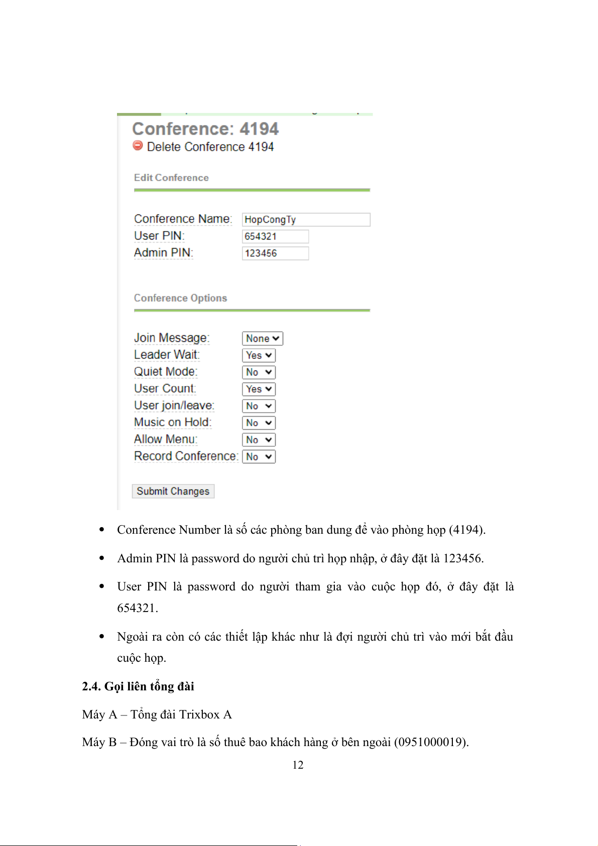 Để cấu hình dịch vụ họp nội bộ công ty, ta dùng conference: 11