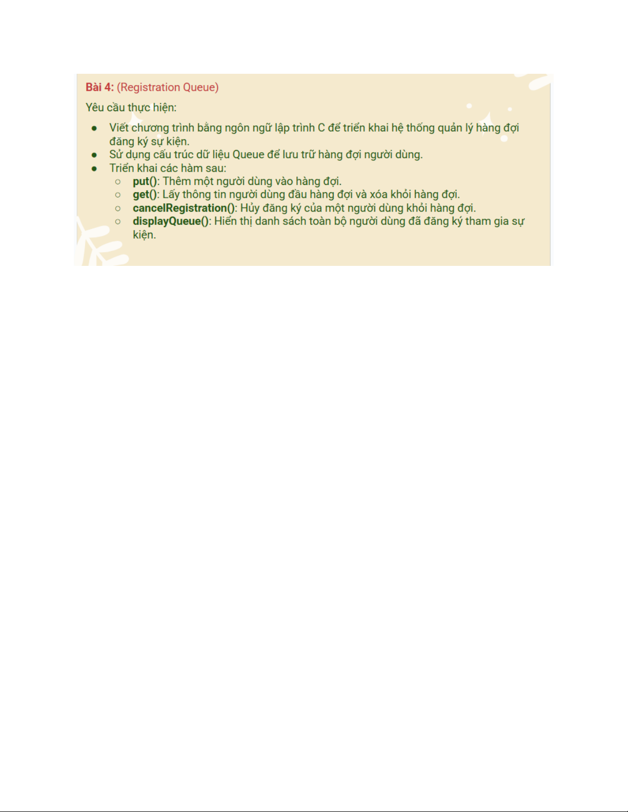 printf("Danh sach dang ky: "); if (isEmpty(q)) { printf("Trong\n"); } else {