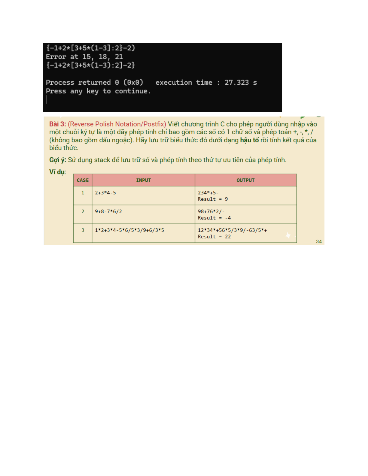 if(c == '+' || c == '-') return 1; return 0; } int main(){ char input[Max]; printf("Input: "); scanf("%s", input); Stack s; initStack(&s); char postfix[Max]; int k = 0; int len = strlen(input);