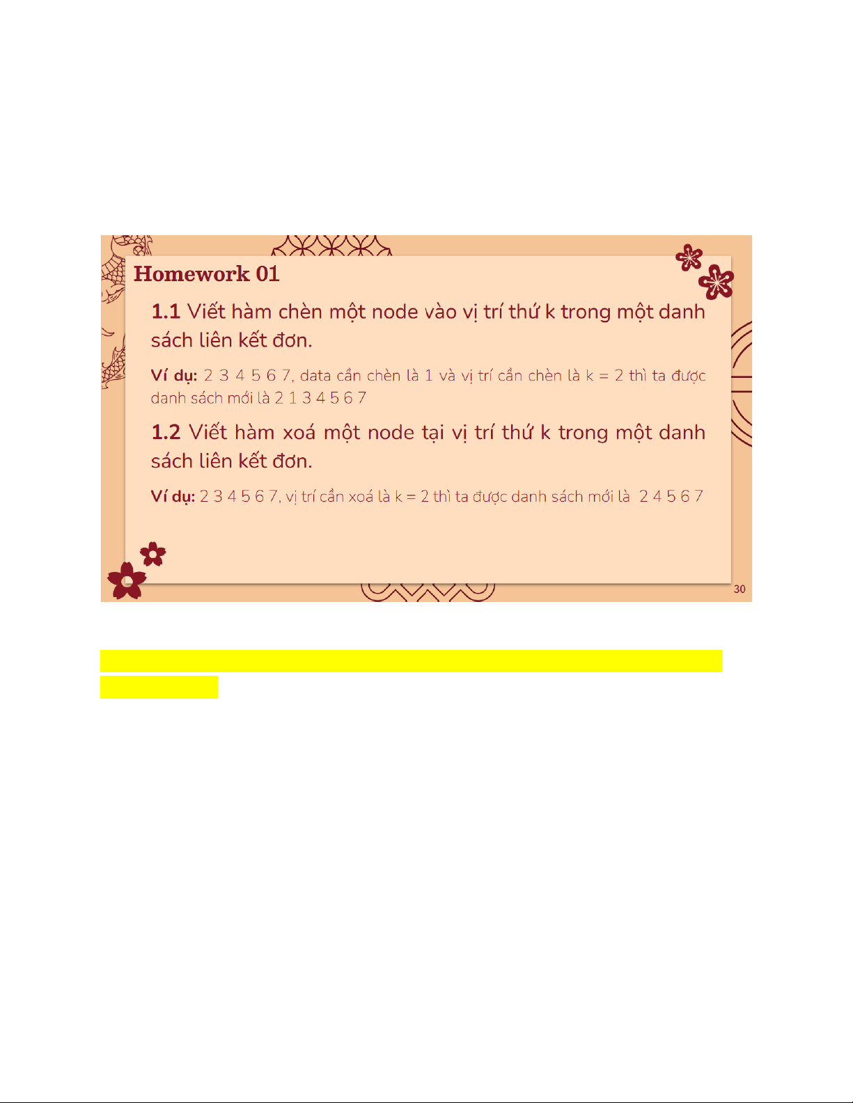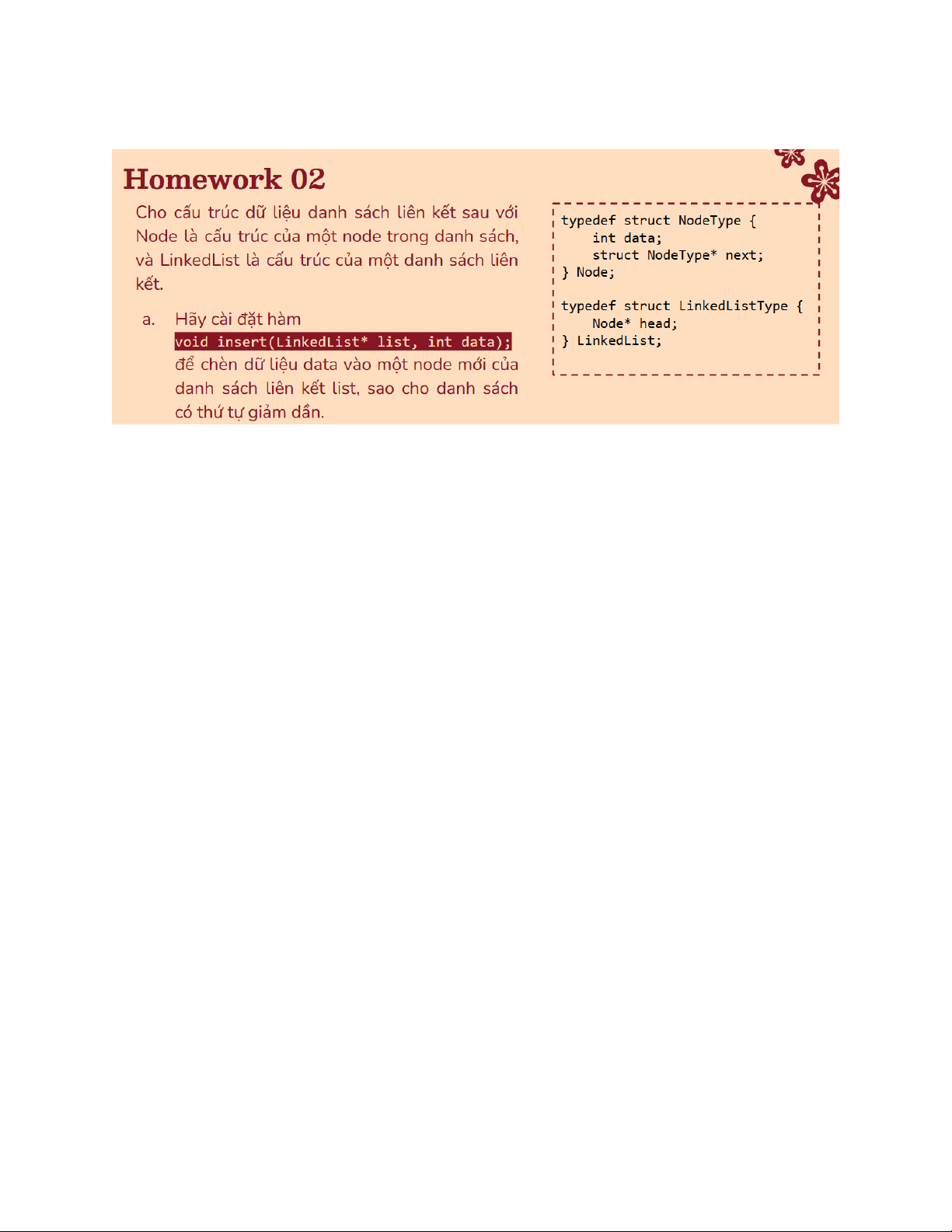 Em xin phép chú thích tại không vững chứ không phải AI đâu nha thầy :< #include #include typedef struct NodeType{ int data; struct NodeType* next; }Node;