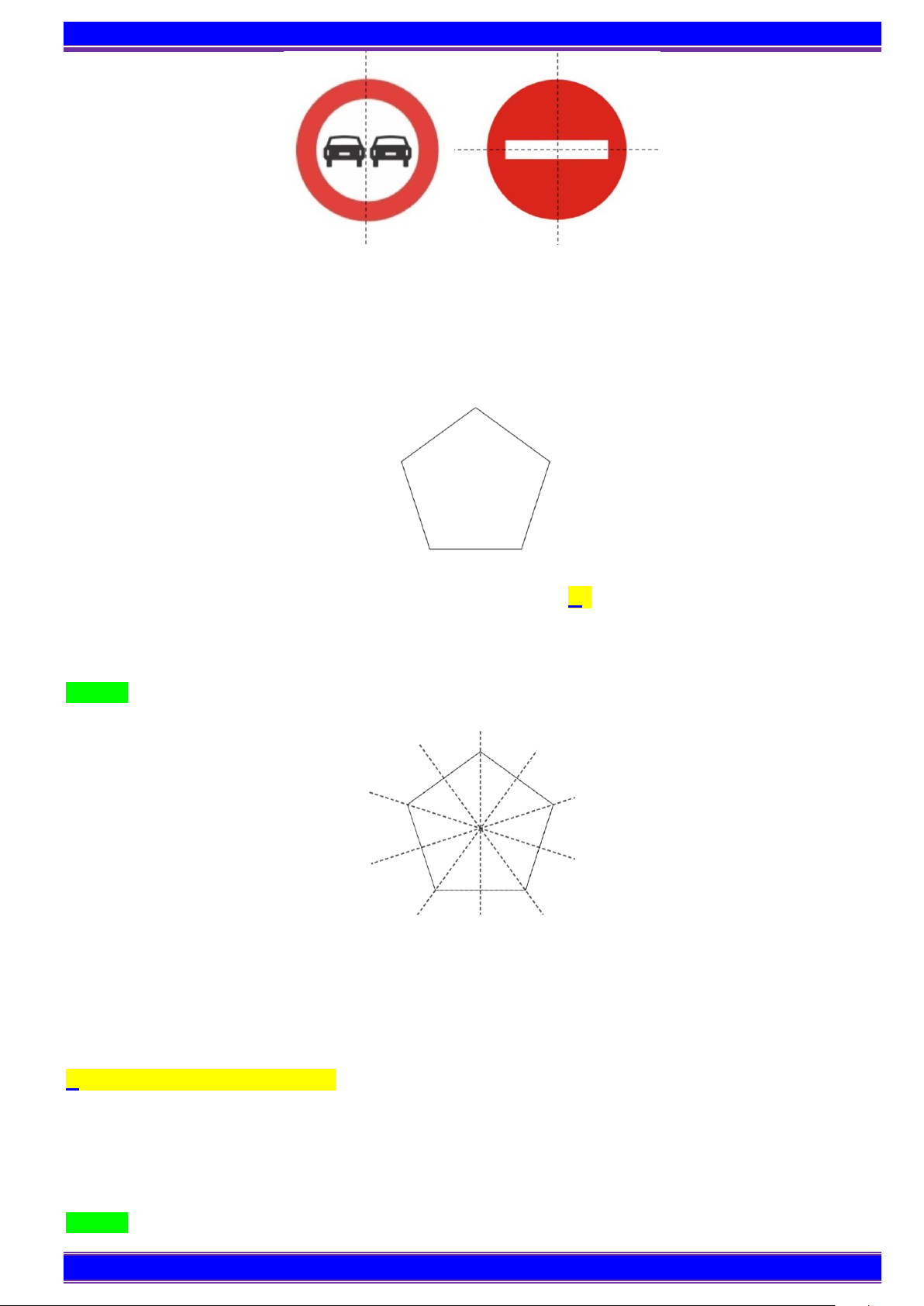 Câu 10. Hình ngũ giác đều sau có mấy trục đối xứng A. 2 B. 3 C. 4 D. 5 Lời giải Chọn D