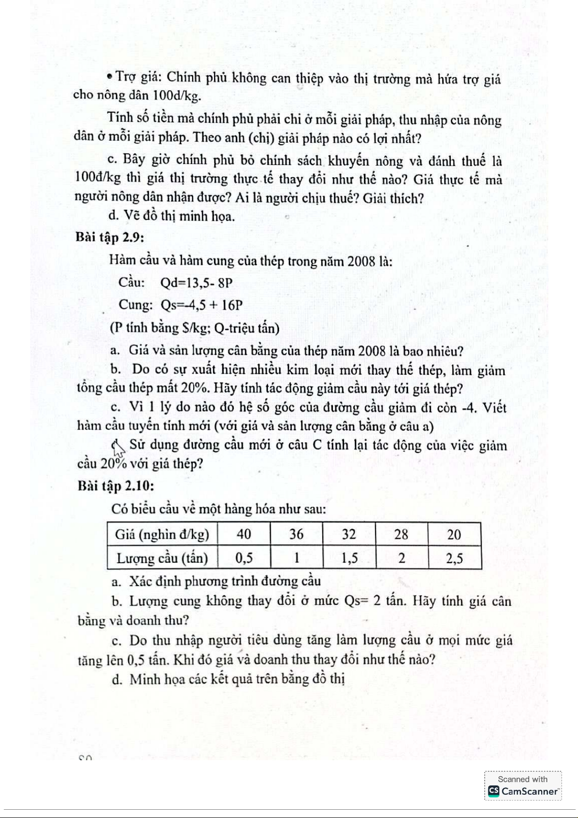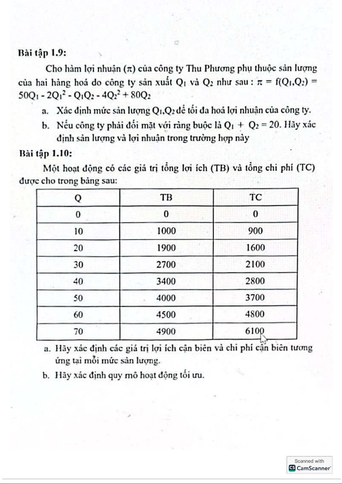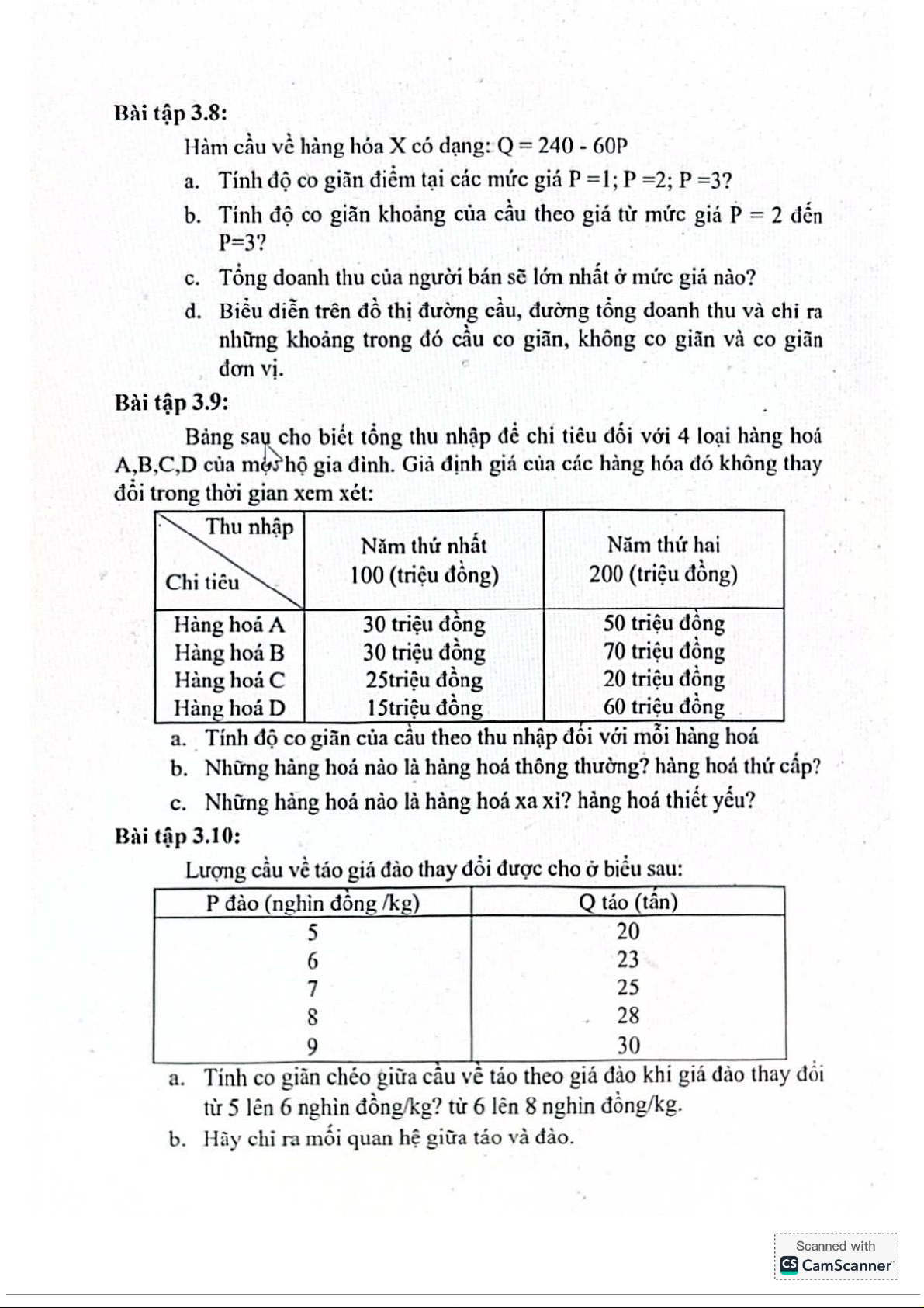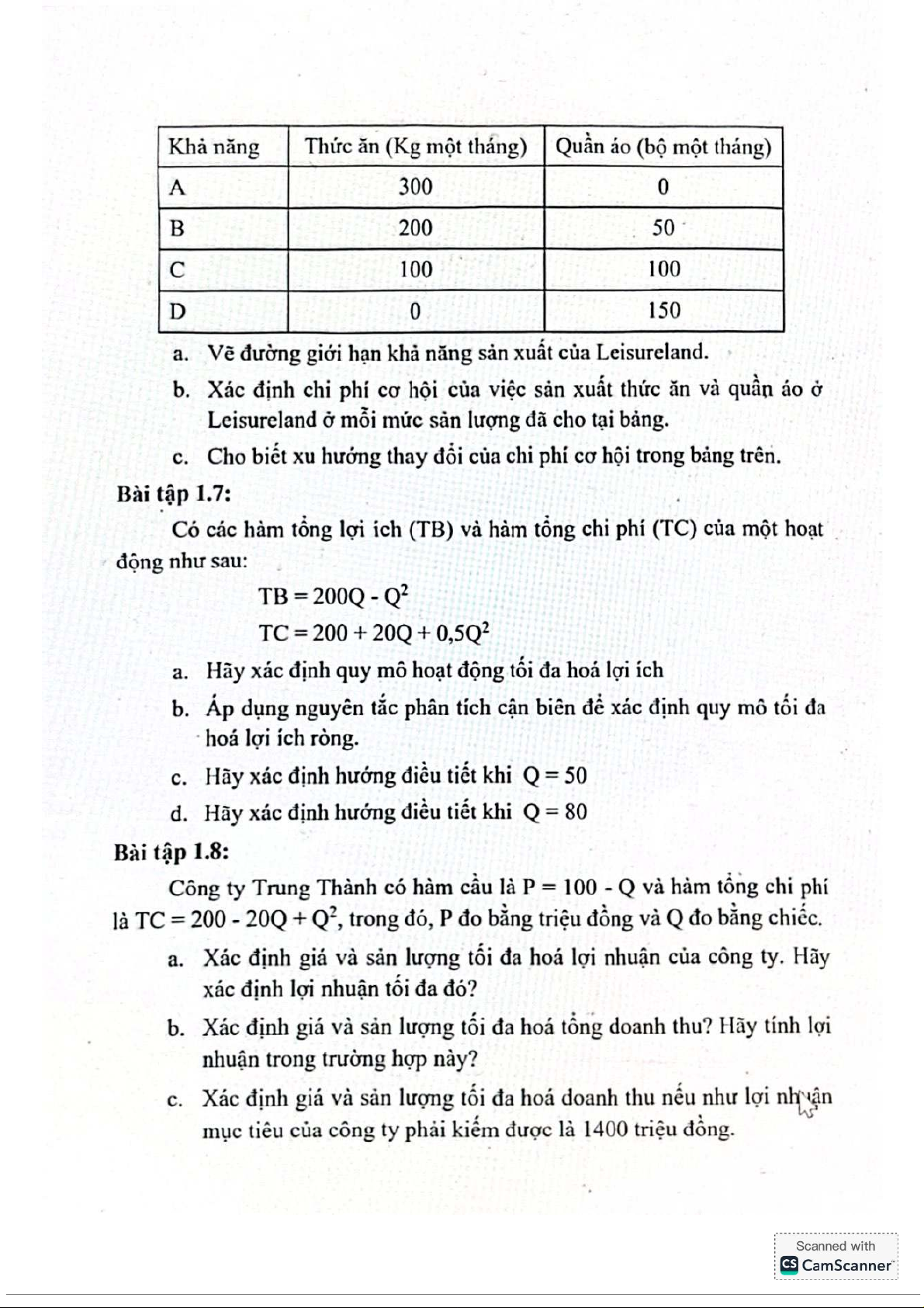 Bài tập chương 1,2,3 môn Kinh tế vi mô | Trường Đại học Kinh Tế Quốc Dân