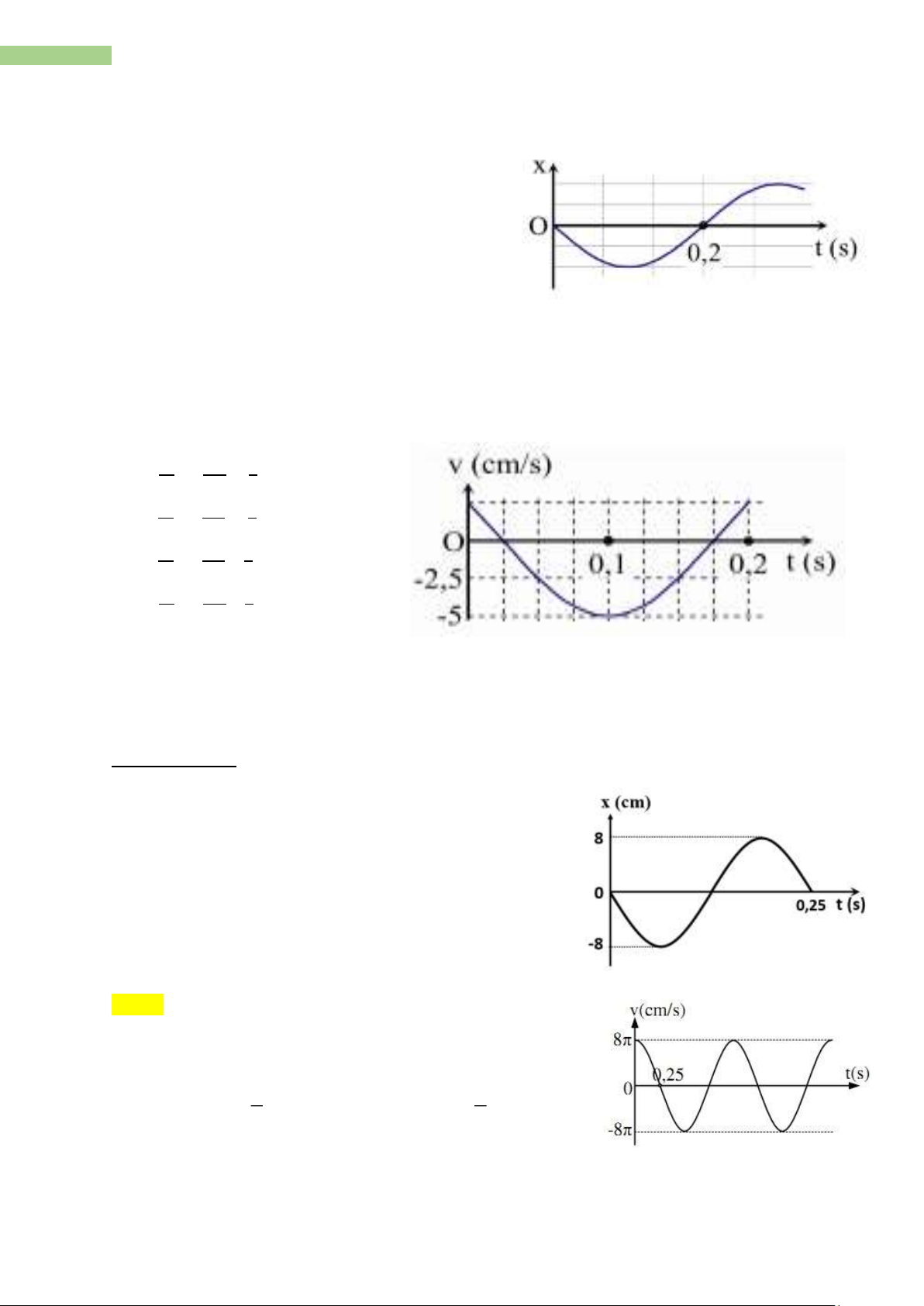 Câu 7. Một vật dao động điều hoà với tần số 5 Hz trên quỹ đạo dài 4 cm. Tại thời điểm ban đầu vật có li độ 1