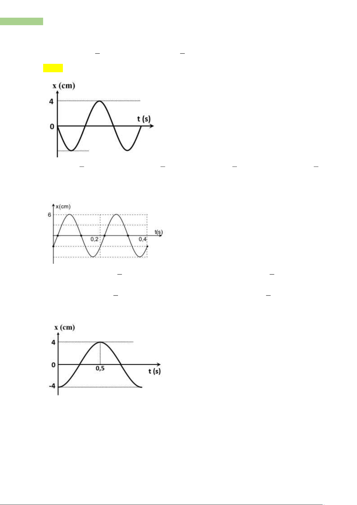 Câu 3. Một vật dao động điều hoà với biên độ 4 cm và chu kỳ 2 s, chọn gốc thời gian là lúc vật đi qua