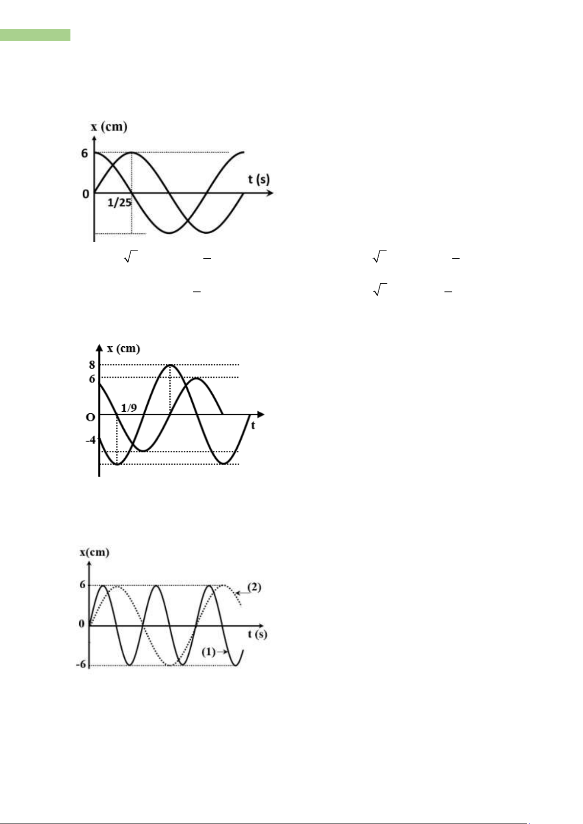 Câu 5. Đồ thị li độ theo thời gian của chất điểm 1(nét liền) và của chất điểm 2 (nét đứt) như hình vẽ, tốc độ cực