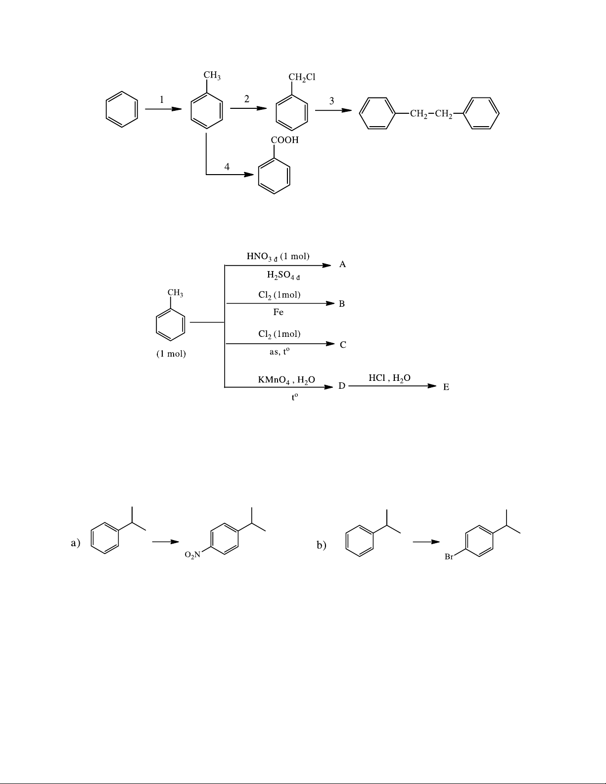 7. Hydrocarbon thơm A (C9H8) cộng hợp với Br2 theo tỉ lệ 1:2 và khi oxi hóa A tạo benzoic