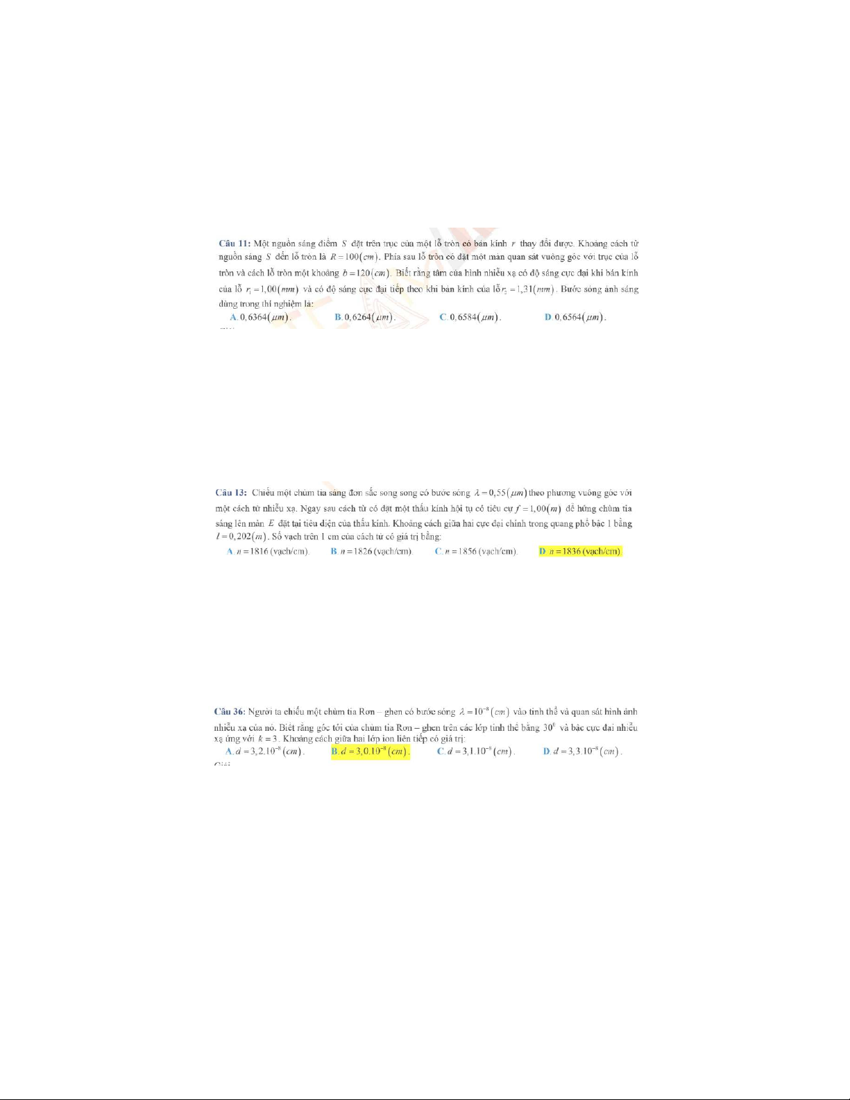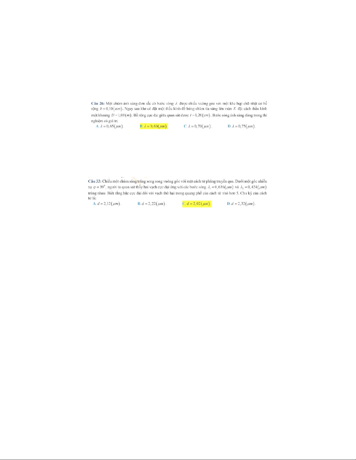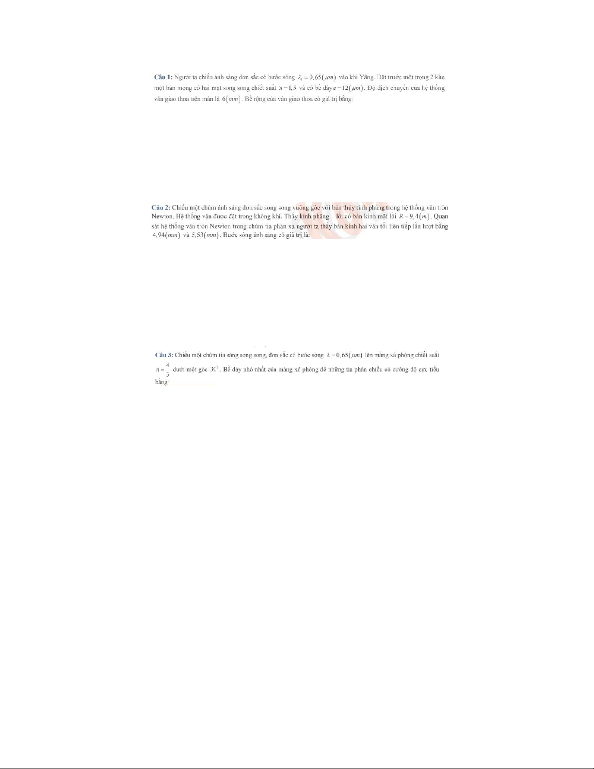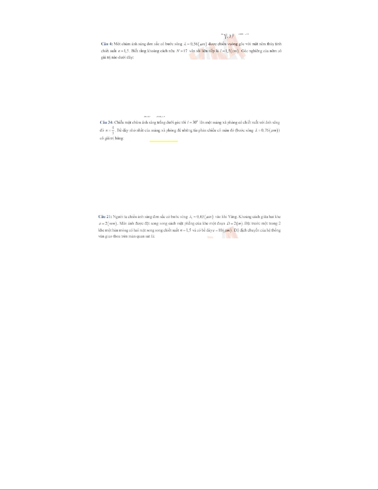 Bài tập chương 1 Giao thoa ánh sáng môn Vật lý đại cương 2 | Học viện Công Nghệ Bưu Chính Viễn Thông