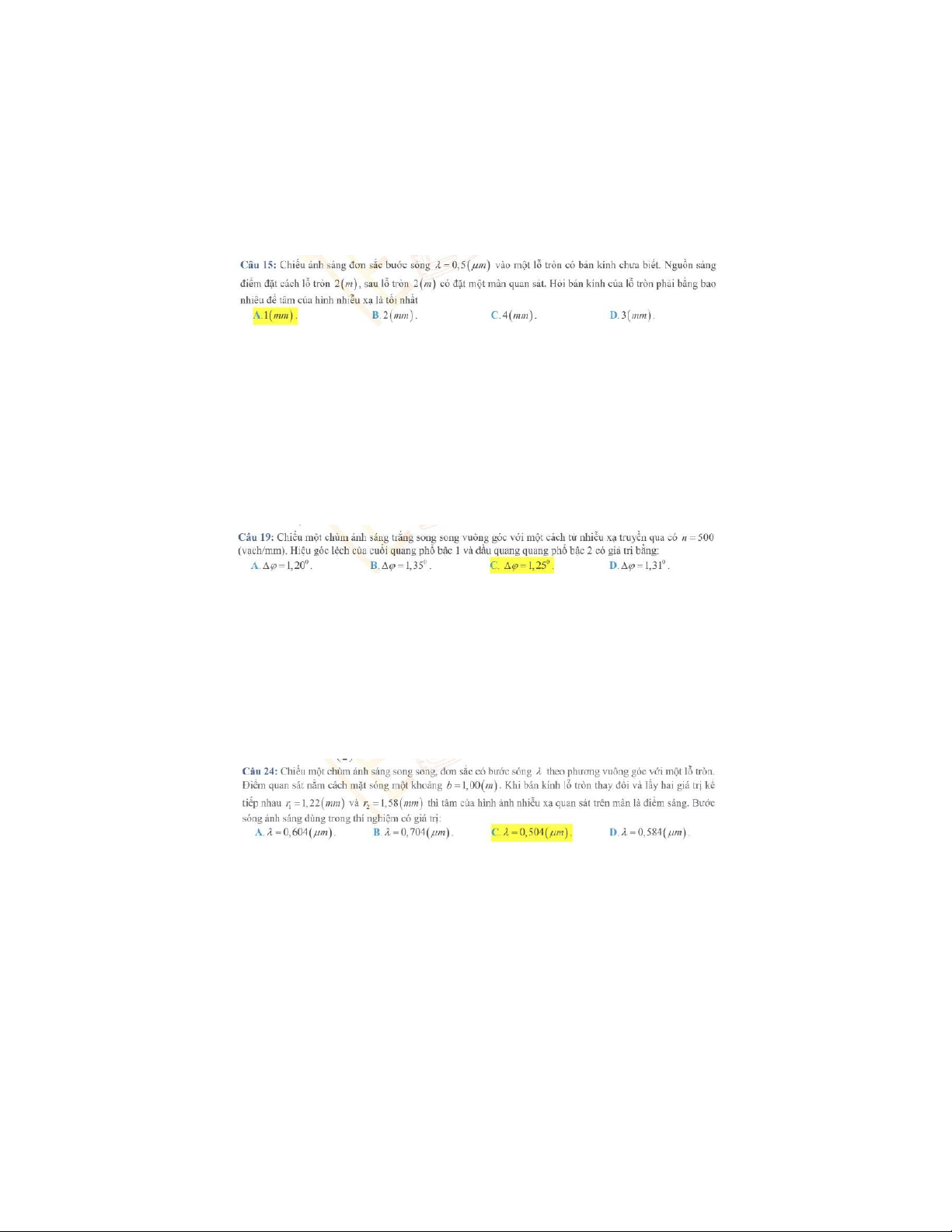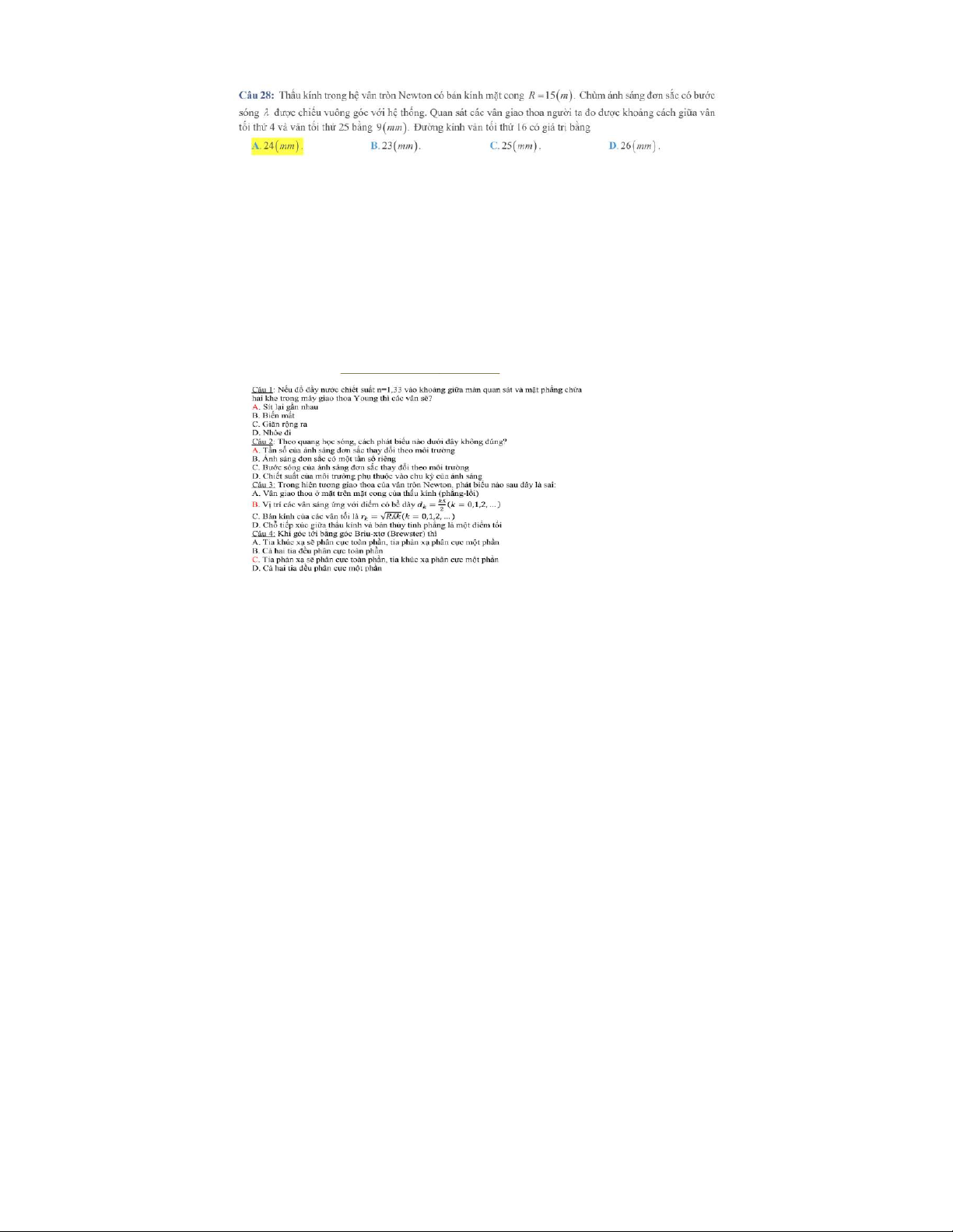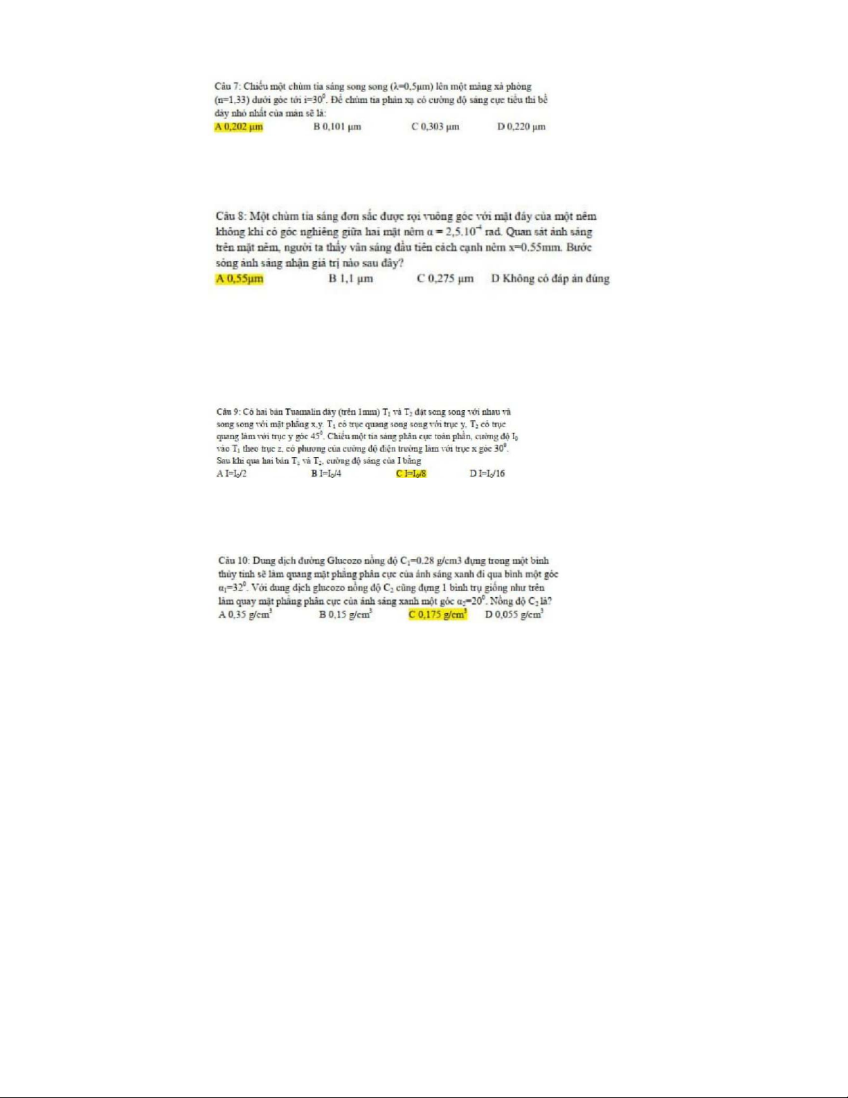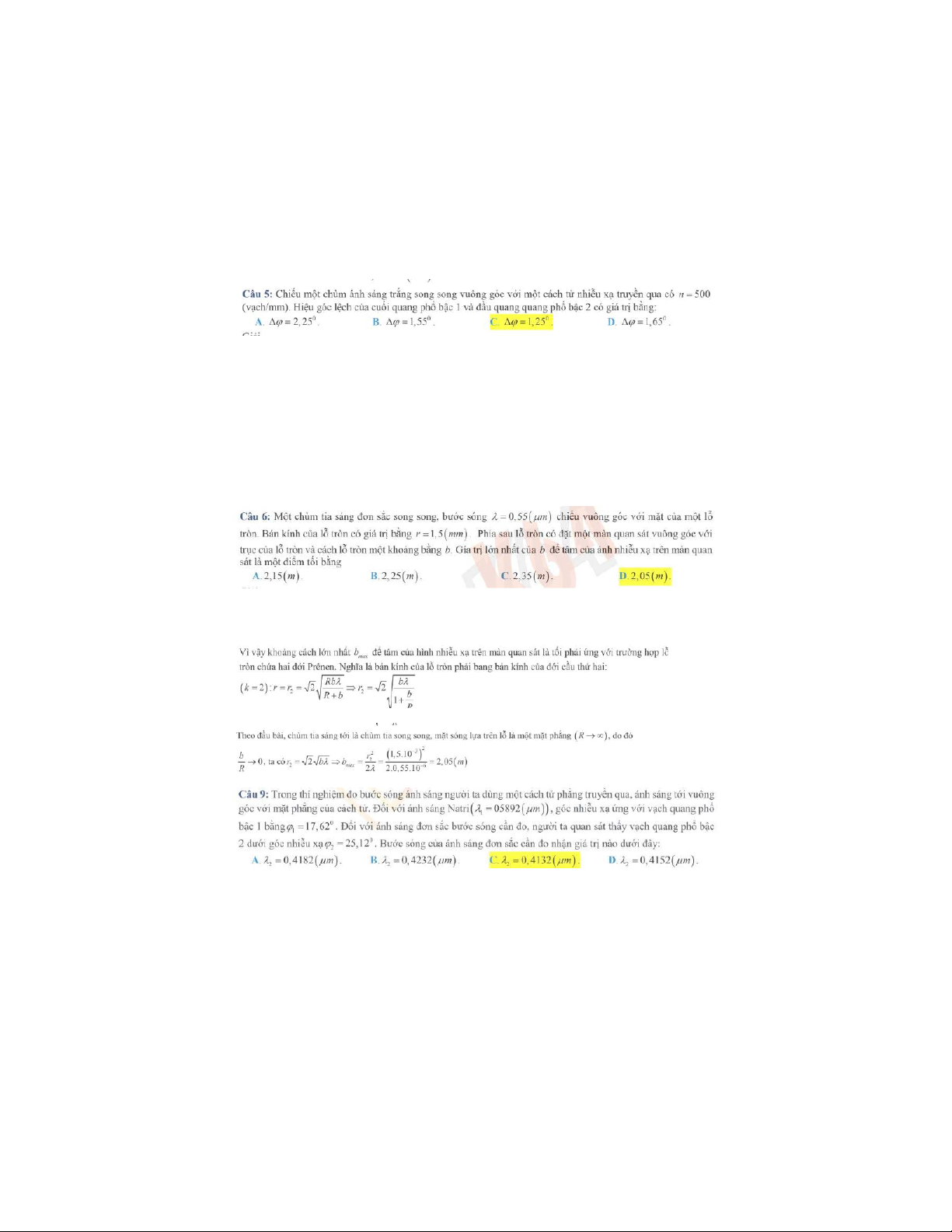 Bài tập chương 1 Giao thoa ánh sáng môn Vật lý đại cương 2 | Học viện Công Nghệ Bưu Chính Viễn Thông