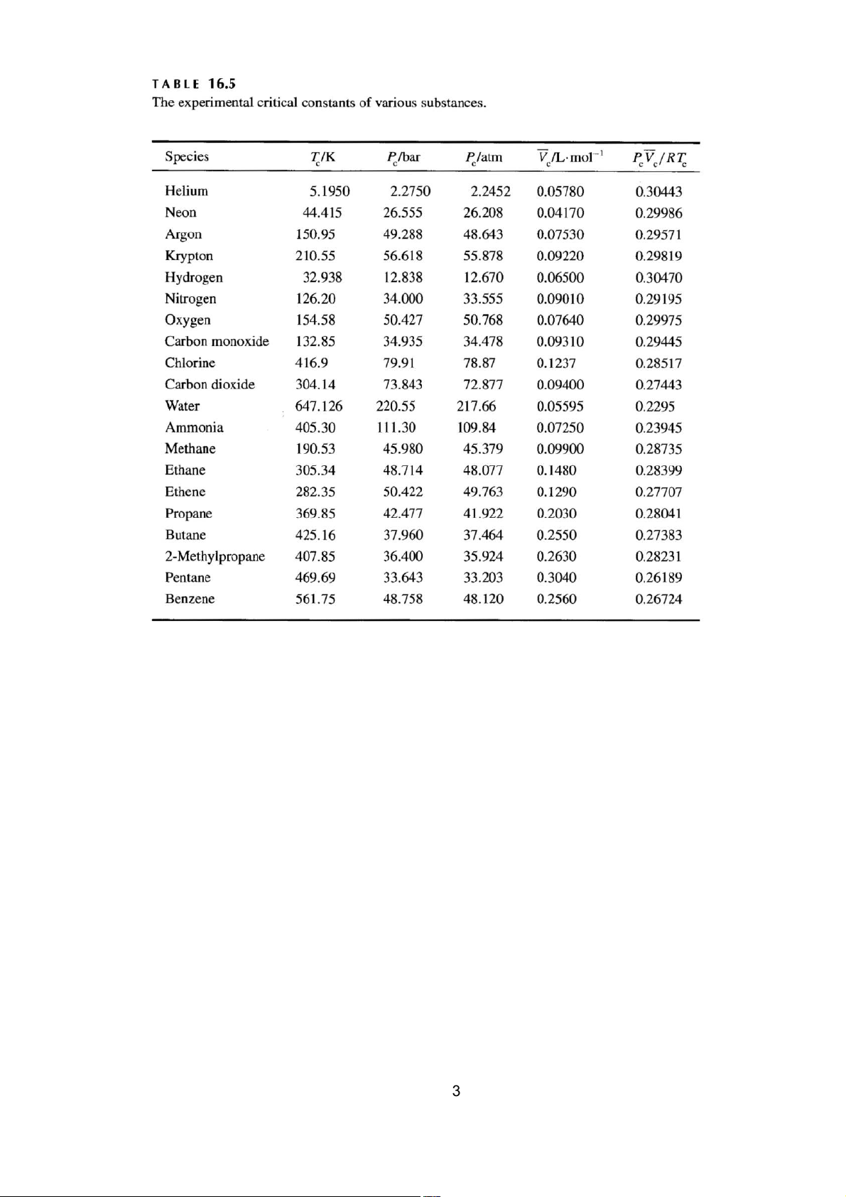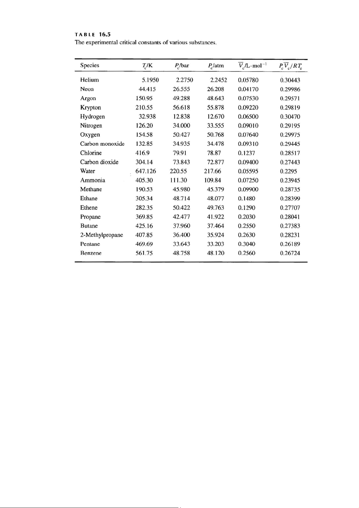 b. Sử dụng dữ liệu hằng số tới hạn trong Bảng 16.5 để tính A và B các hằng số Redlich-Kwong cho etan. Khí Tc/K Pc/bar Pc/atm -1