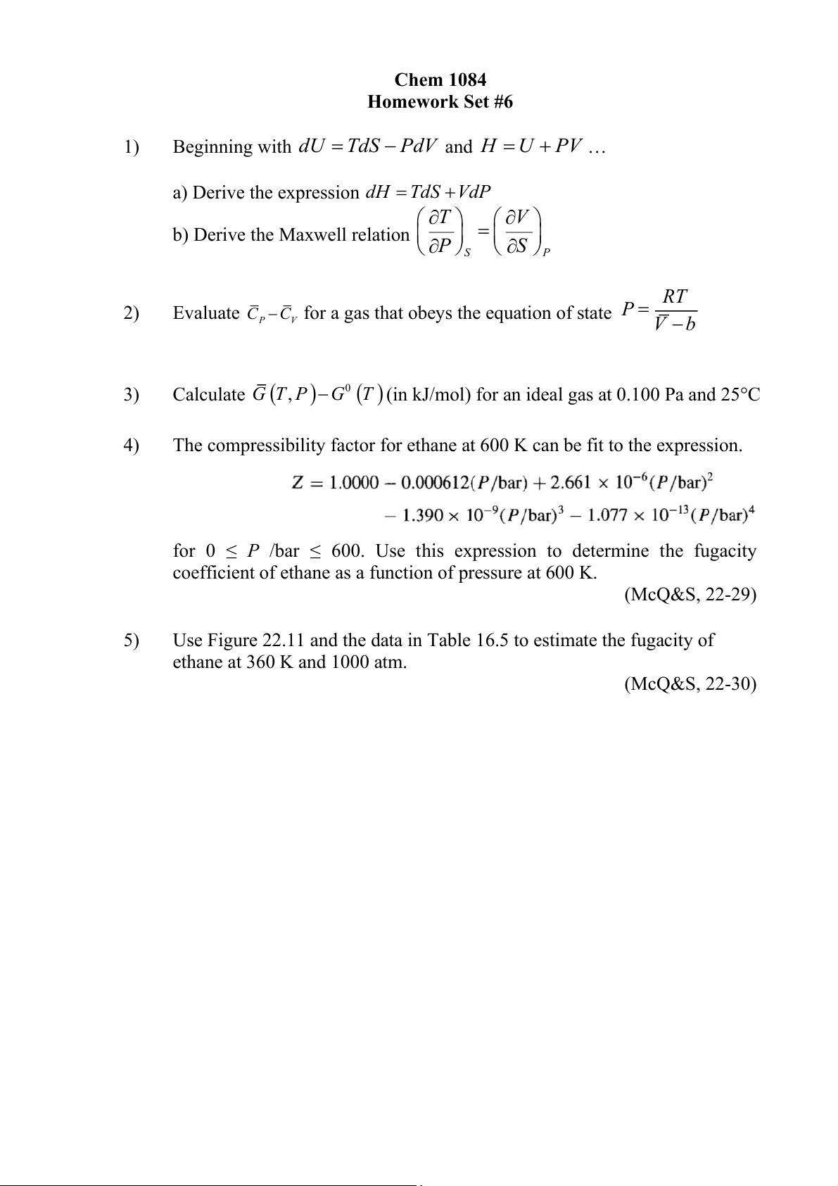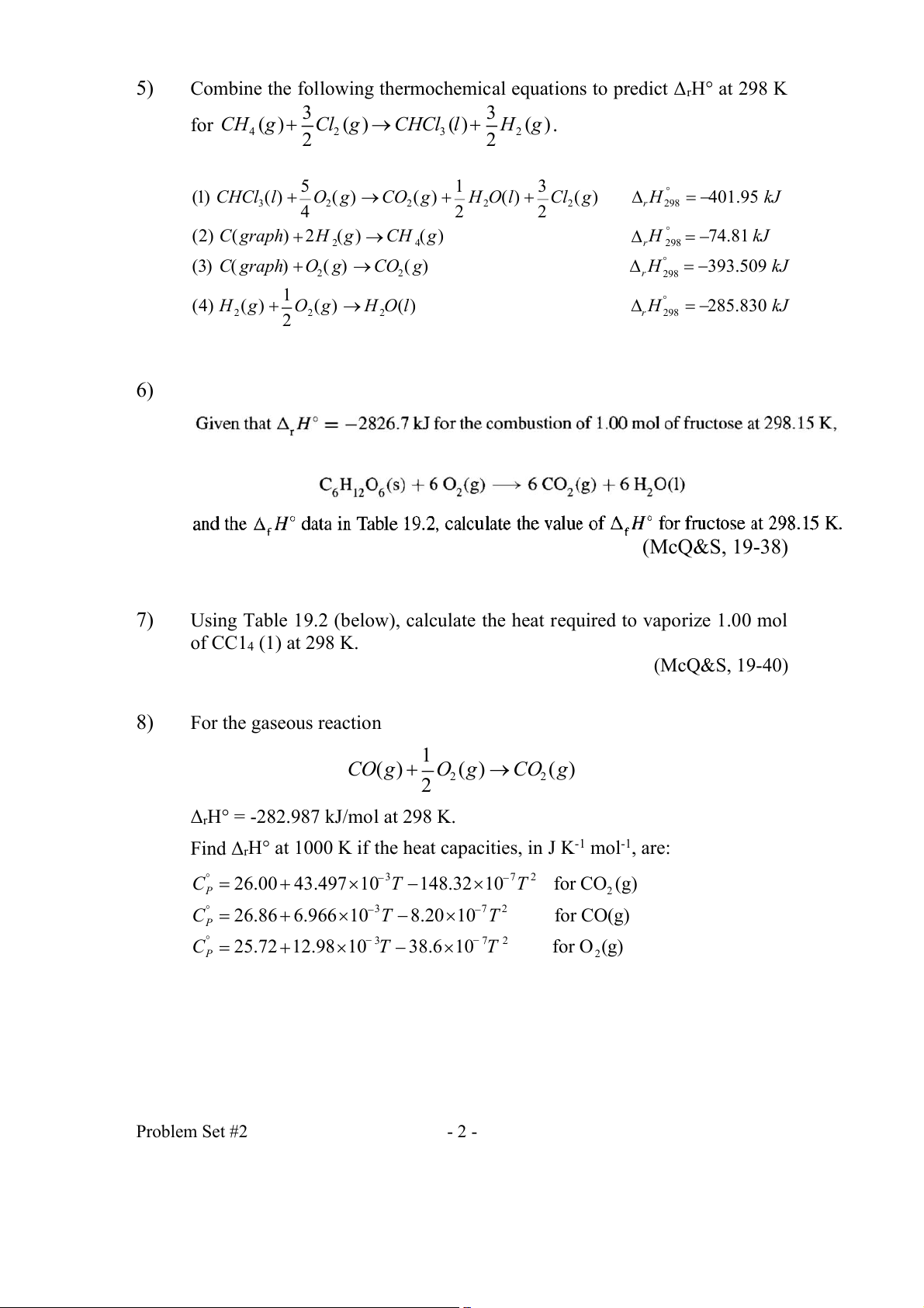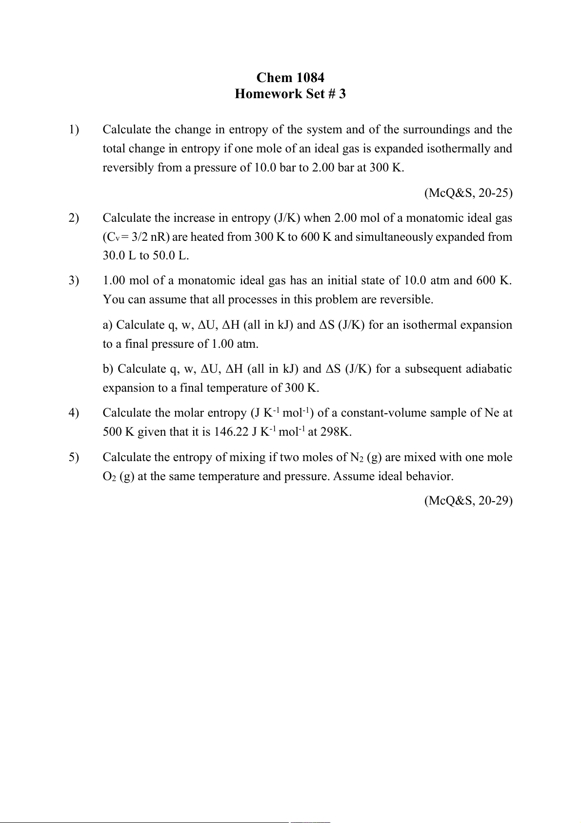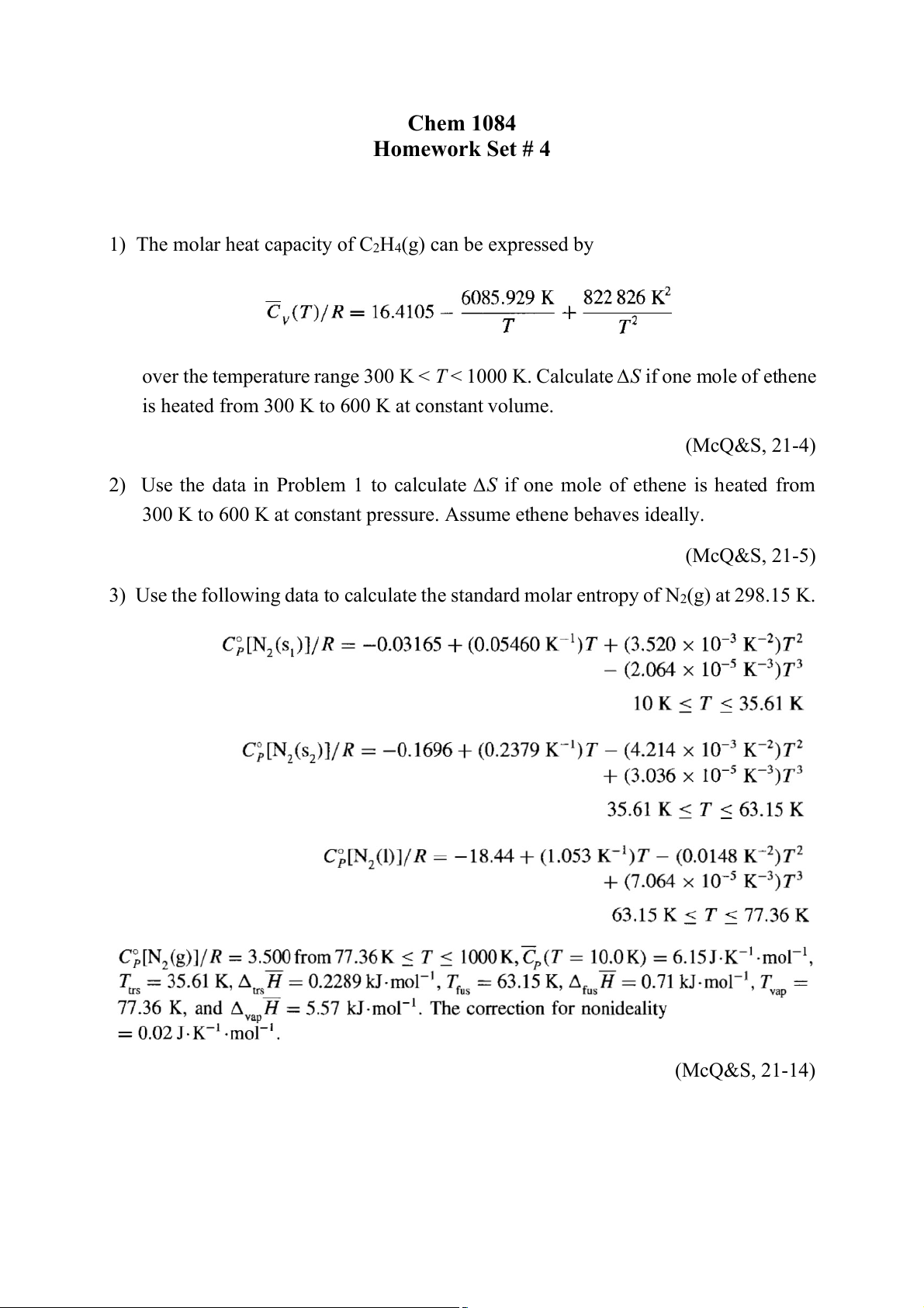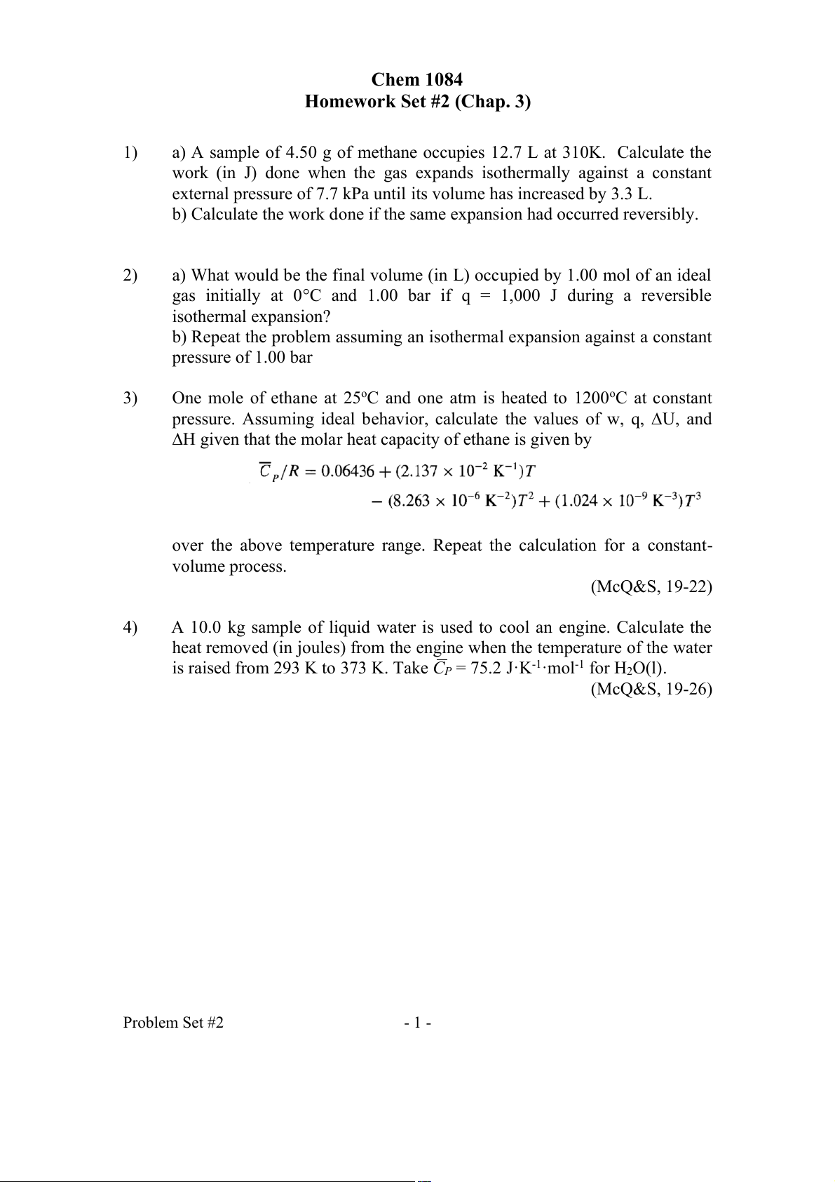 C = 25.72 +12.9810 T − 38.610 T for O (g) P 2 Problem Set #2 - 2 - Problem Set #2 - 3 - Chem 1084 Homework Set # 3 1)