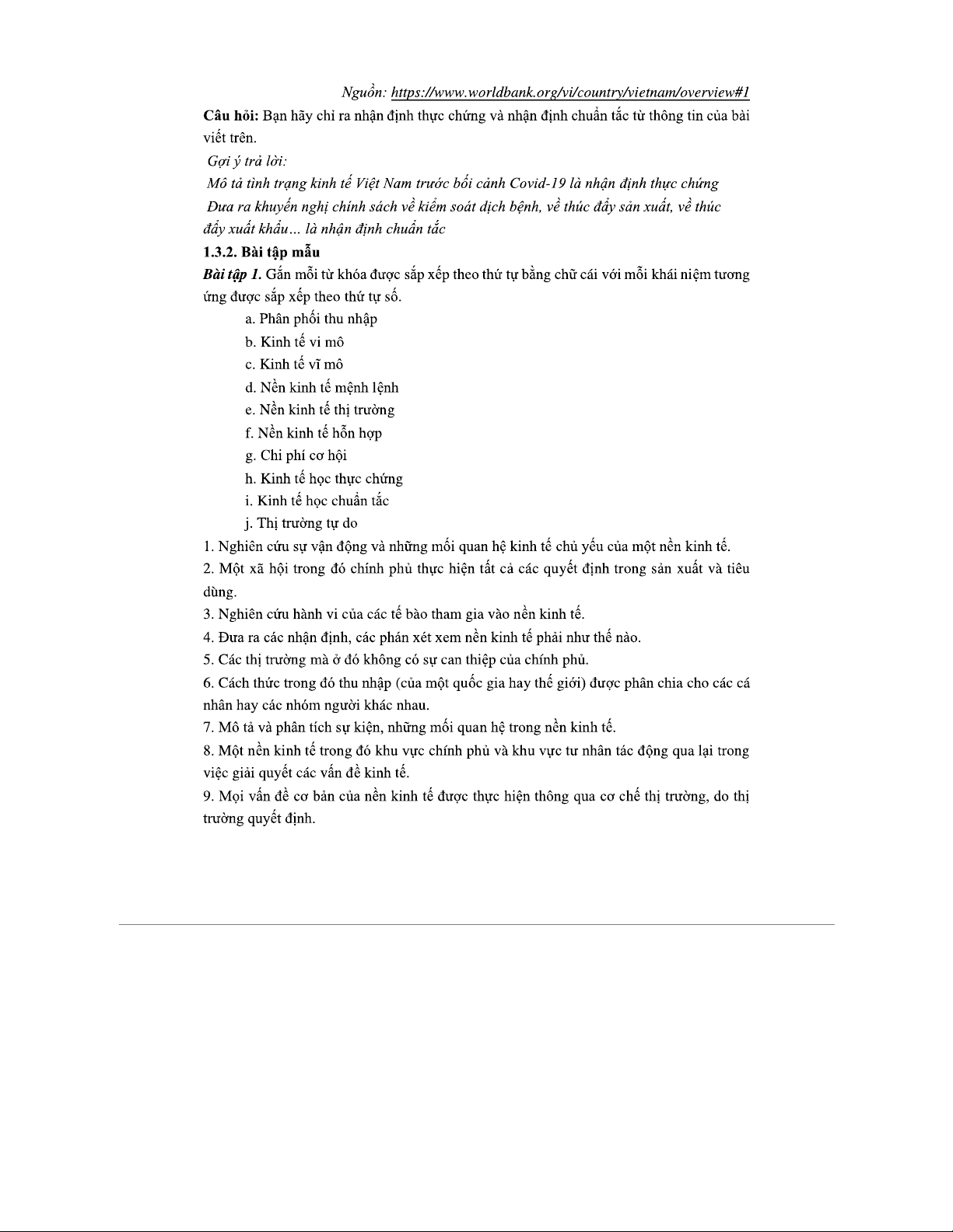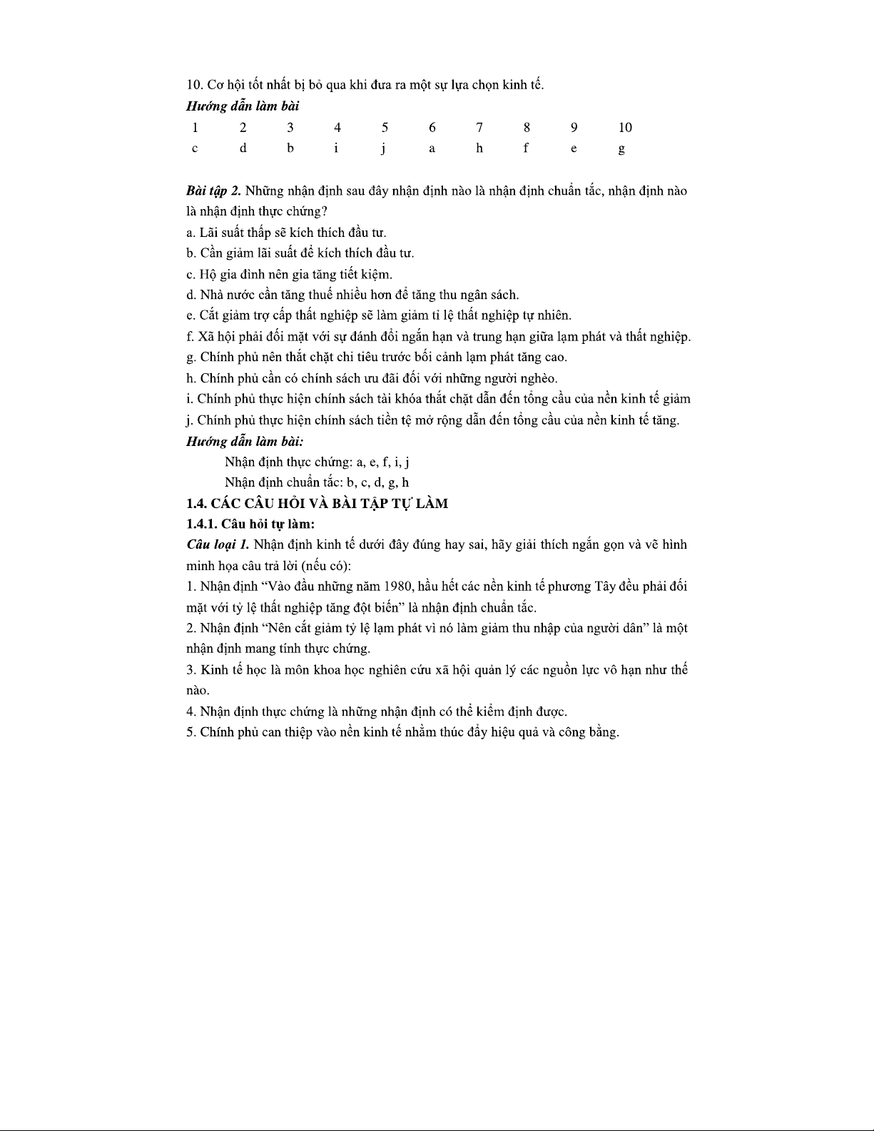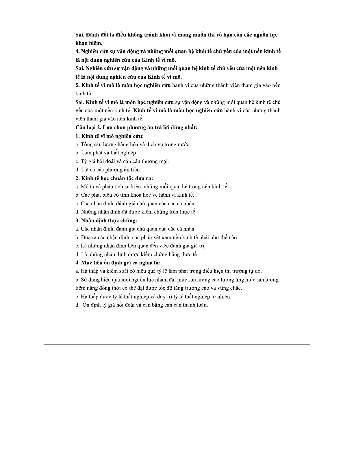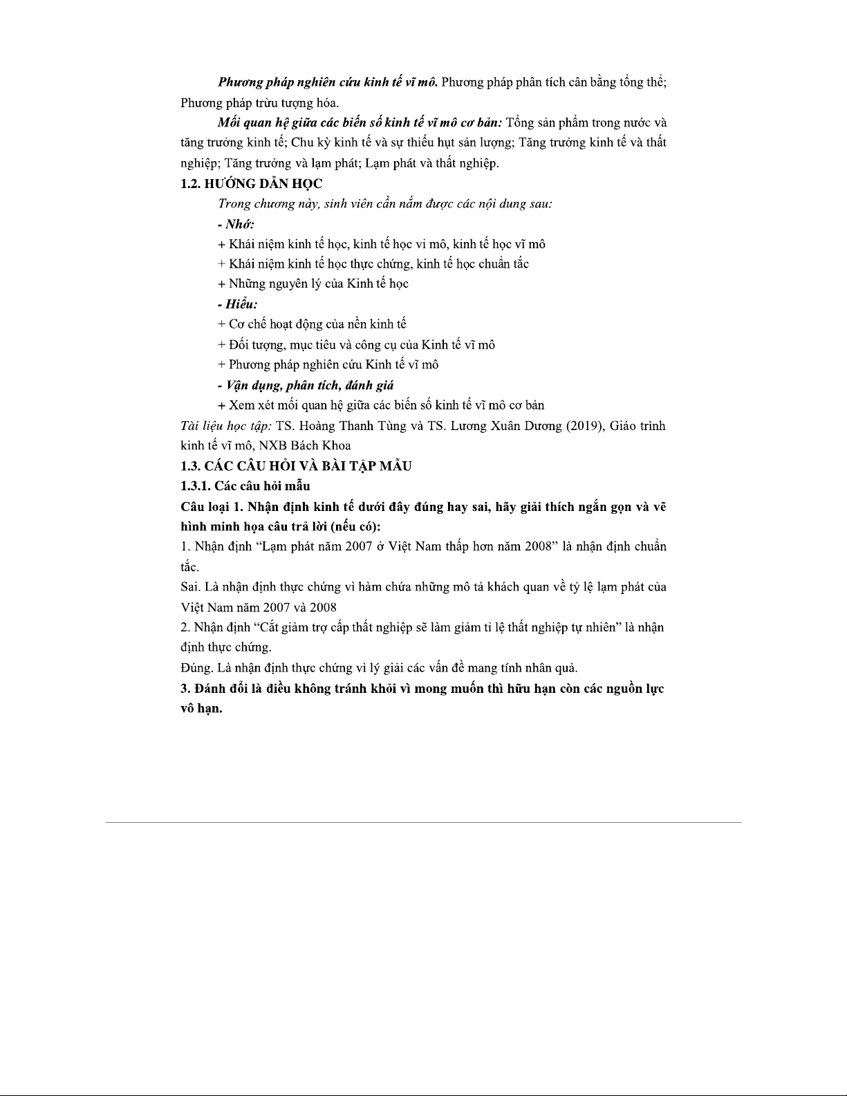 Bài tập chương 1: Tổng quan về Kinh tế vĩ mô - Kinh tế học Vĩ mô