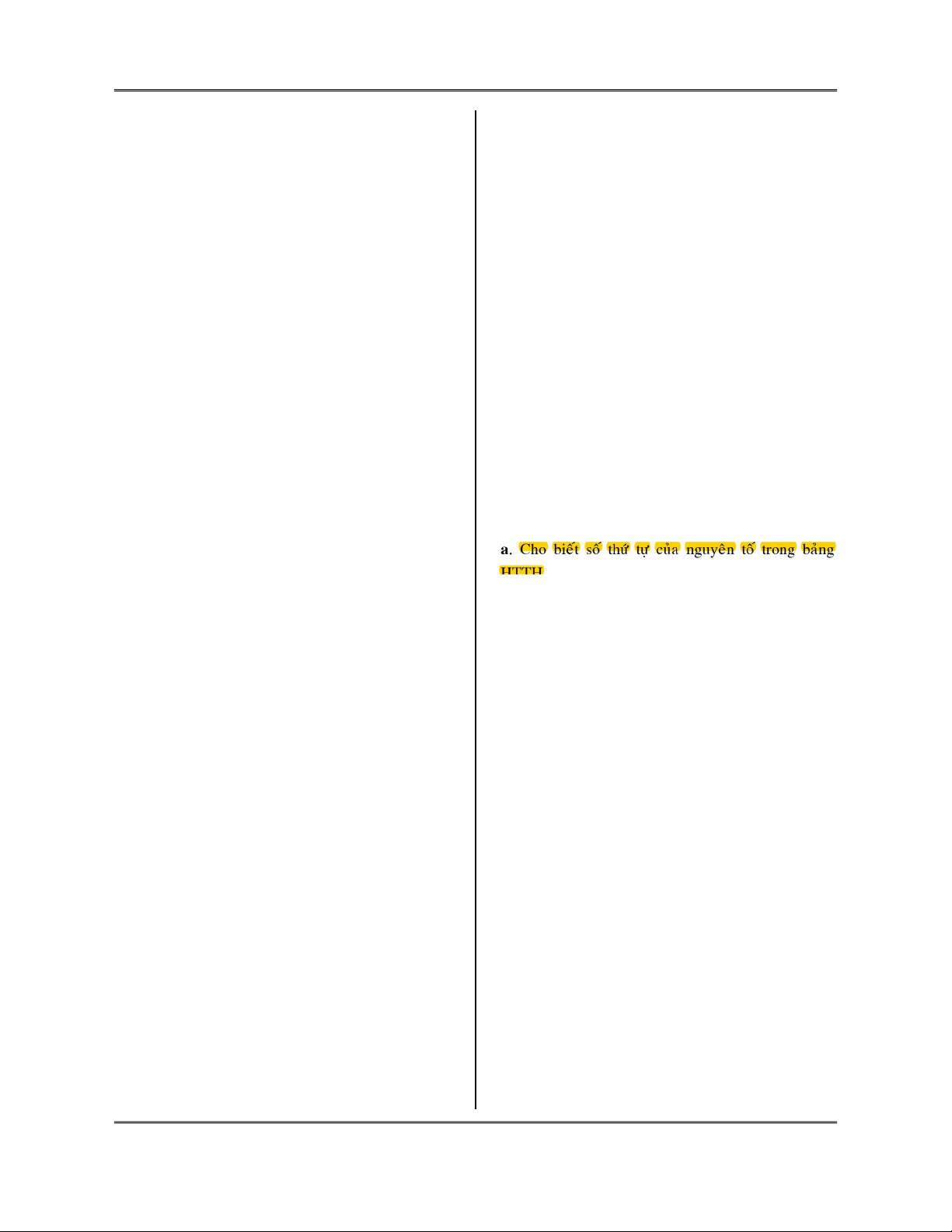a. Cho bieát soá thöù töï cuûa nguyeân toá trong baûng D. Al < Na < K HTTH