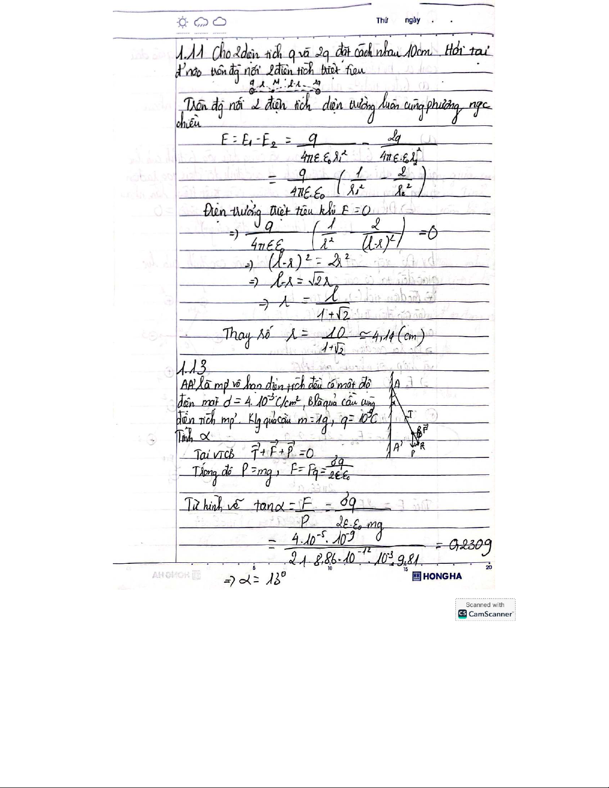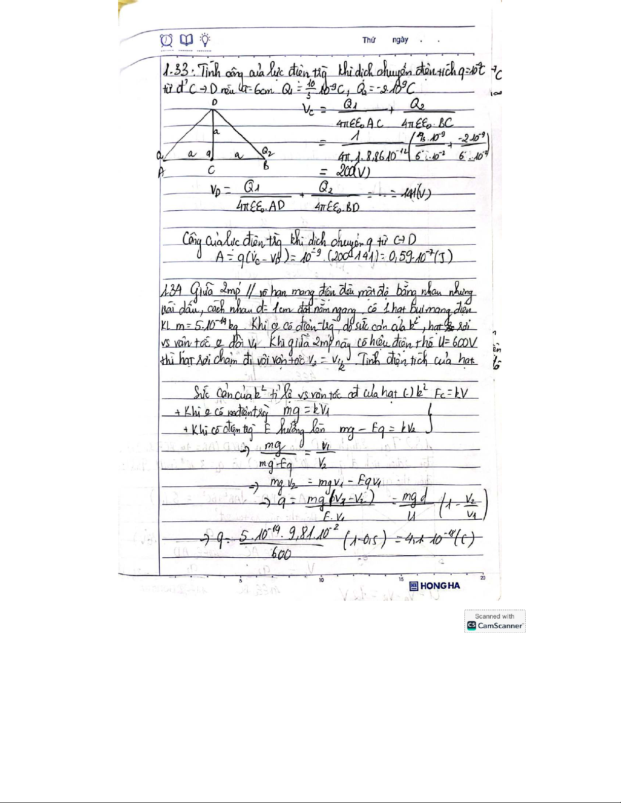 Bài Tập (Chương 1+2) - Tính Toán Điện Tích và Lực Điện môn Vật lý đại cương 2 | Học viện Công Nghệ Bưu Chính Viễn Thông