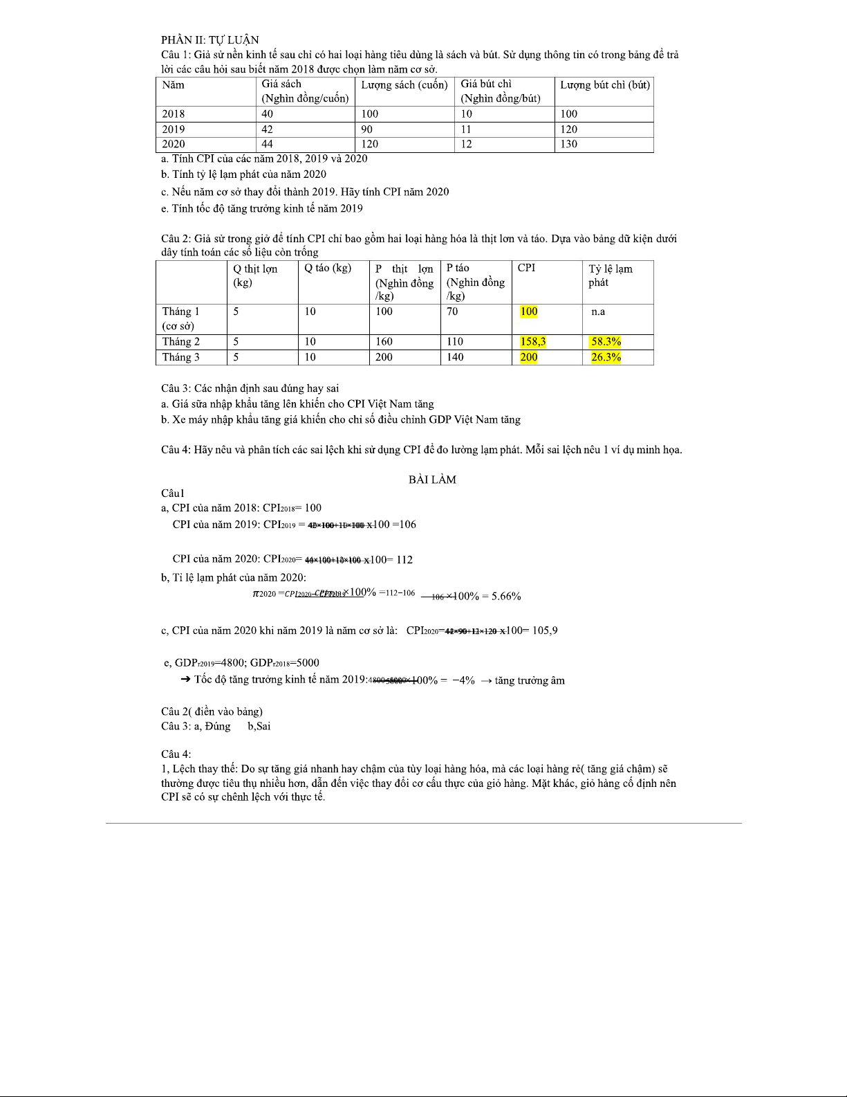 BÀI TẬP CHƯƠNG 2 KINH TẾ VĨ MÔ: Tính GDP và Tăng Trưởng Kinh Tế