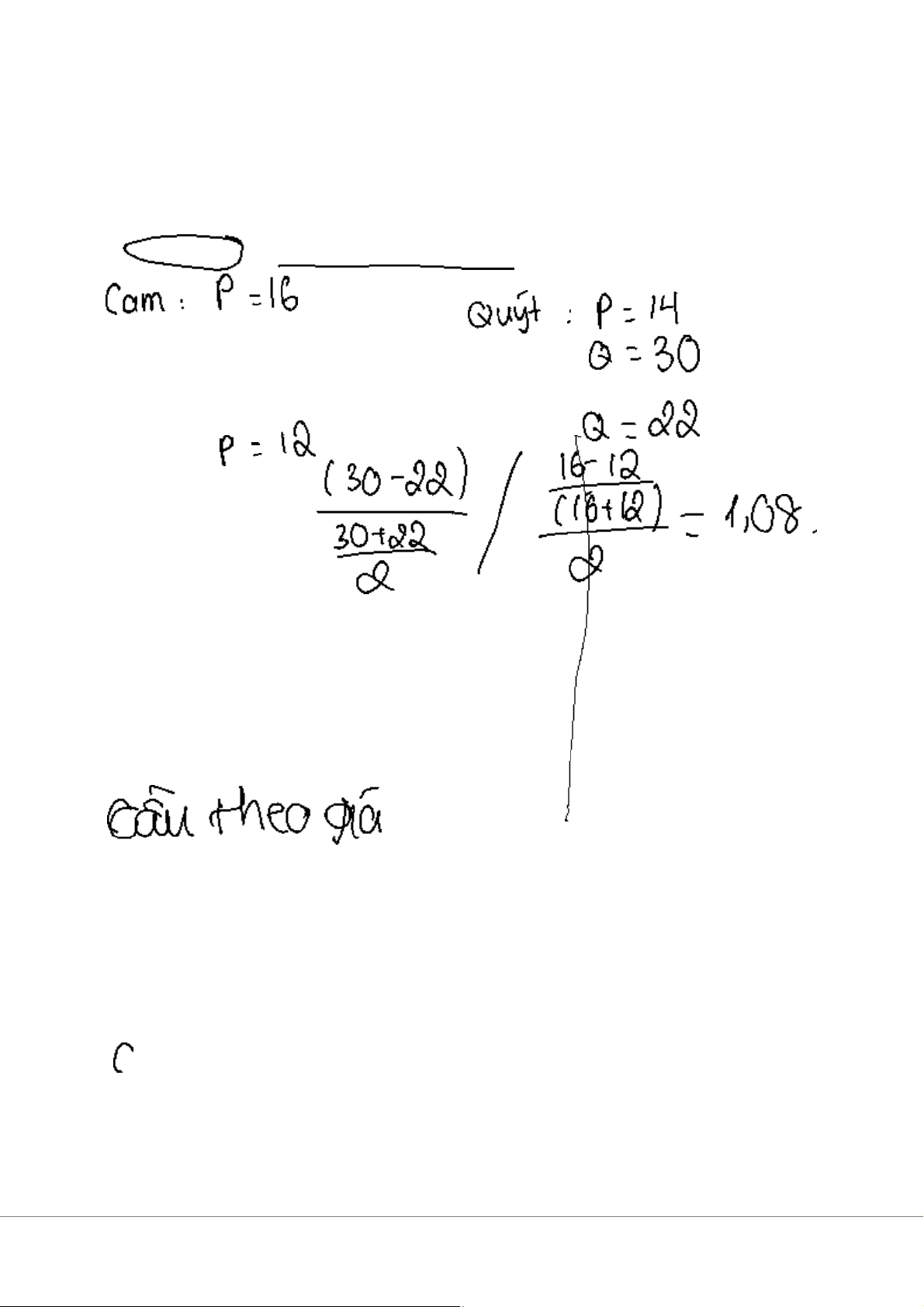 Khi giá cam là 16k/cân và giá qu t là 14k/cân thì lư ng qu t người tiêu dùng