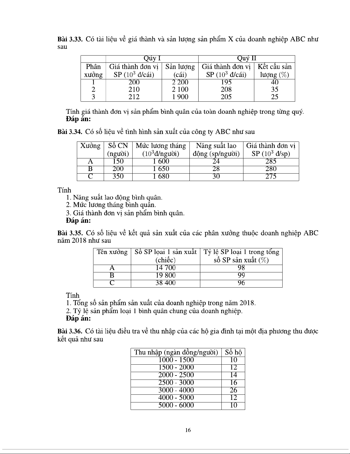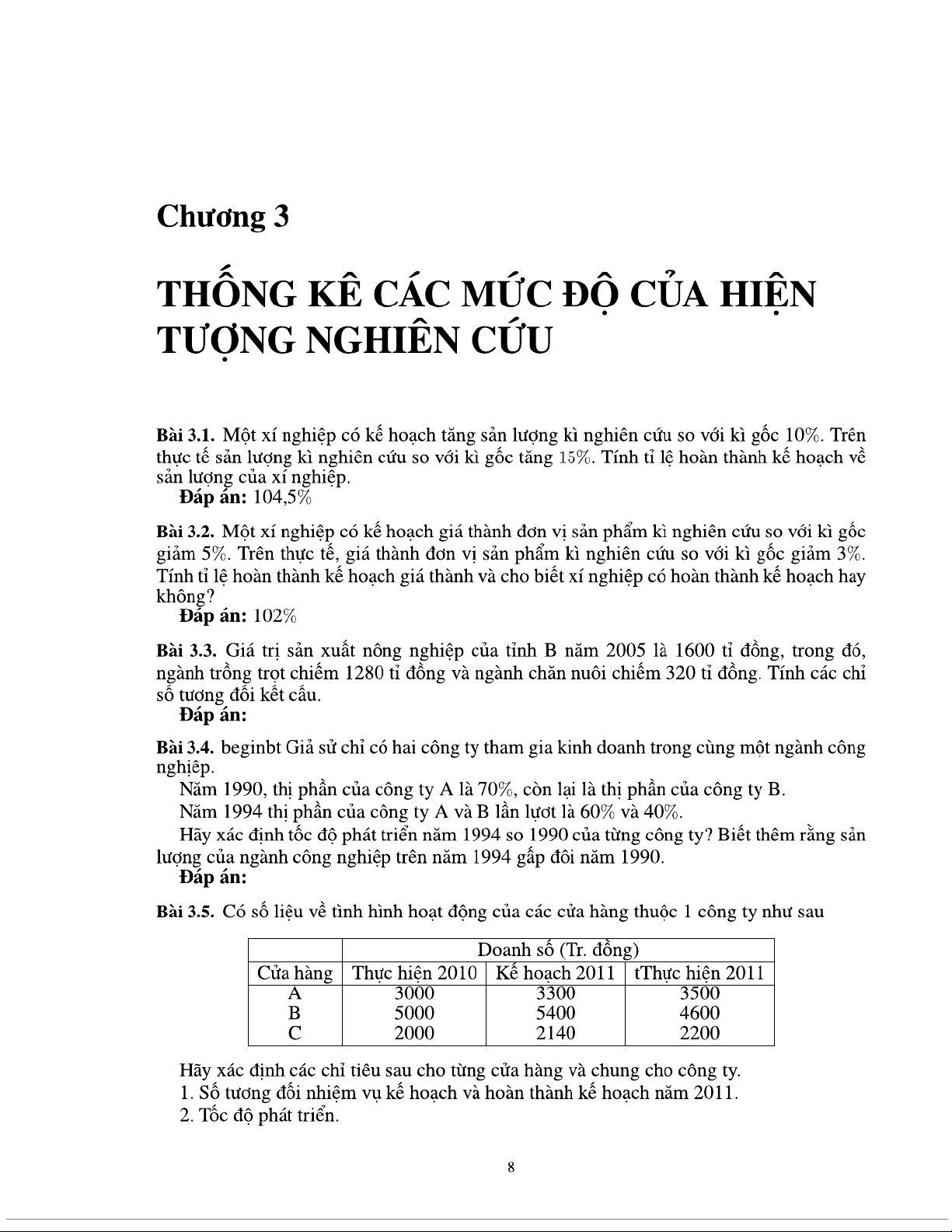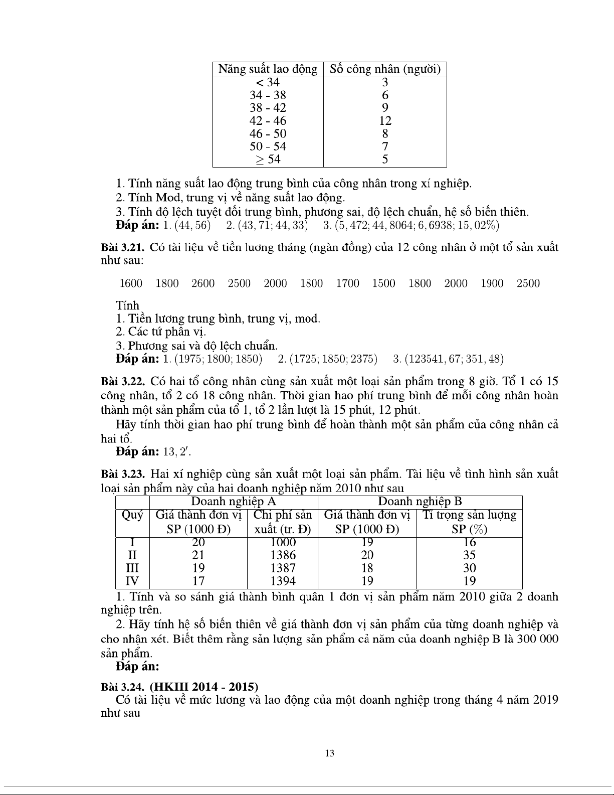 Bài tập chương 3 Thống kê các mức độ của hiện tượng nghiên cứu môn Nguyên lý thống kê | Trường Đại học Kinh tế Quốc dân
