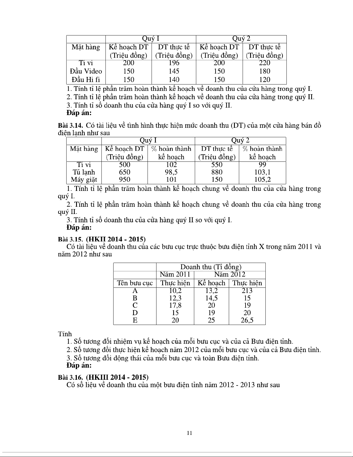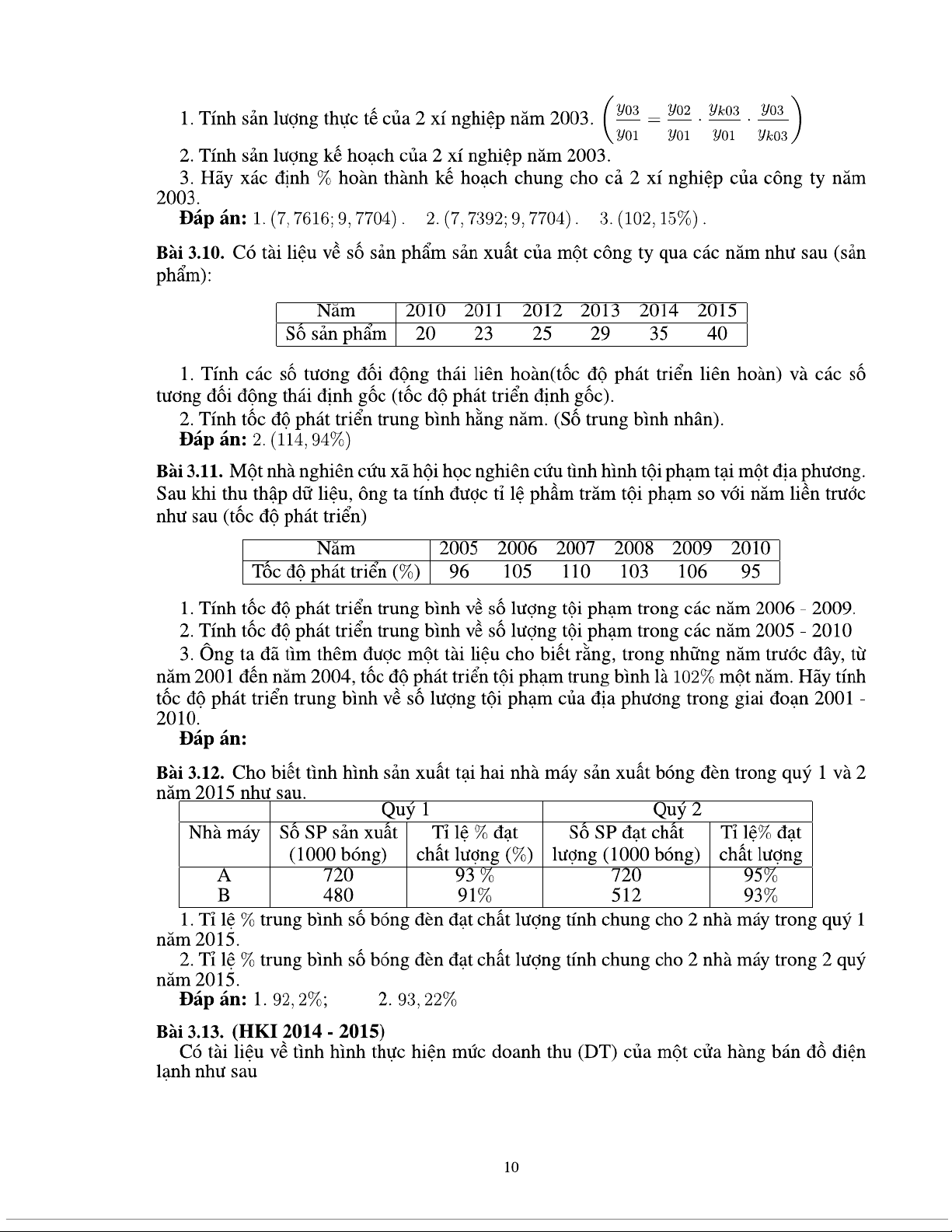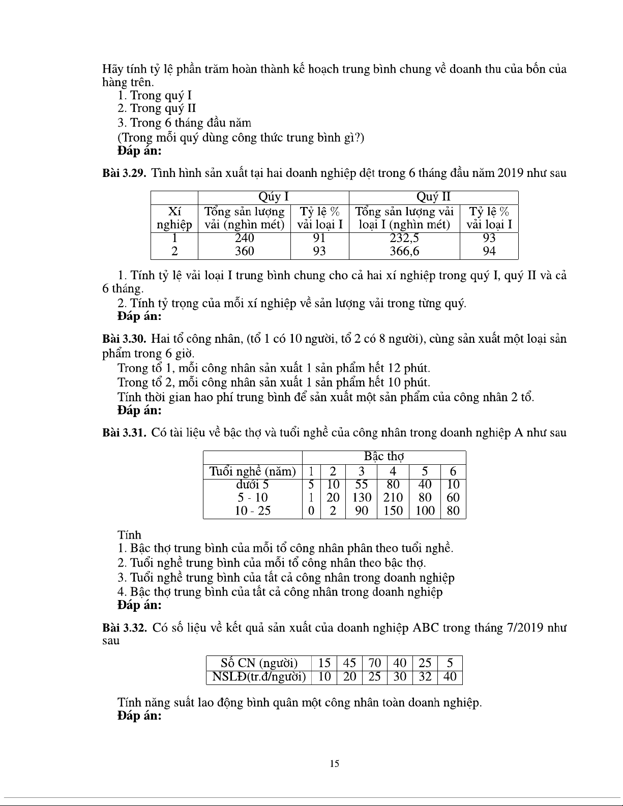 Bài tập chương 3 Thống kê các mức độ của hiện tượng nghiên cứu môn Nguyên lý thống kê | Trường Đại học Kinh tế Quốc dân