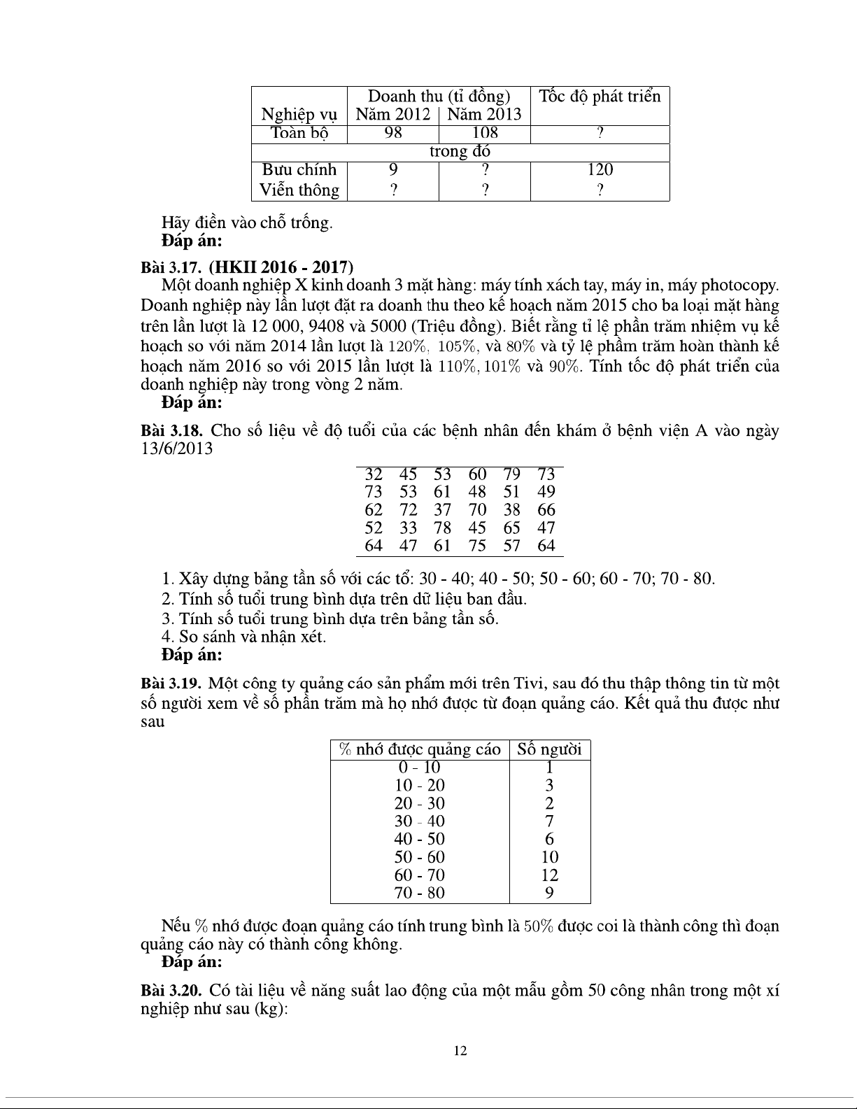 Bài tập chương 3 Thống kê các mức độ của hiện tượng nghiên cứu môn Nguyên lý thống kê | Trường Đại học Kinh tế Quốc dân.Tài liệu giúp bạn tham khảo, ôn tập và đạt kết quả cao. Mời đọc đón xem!