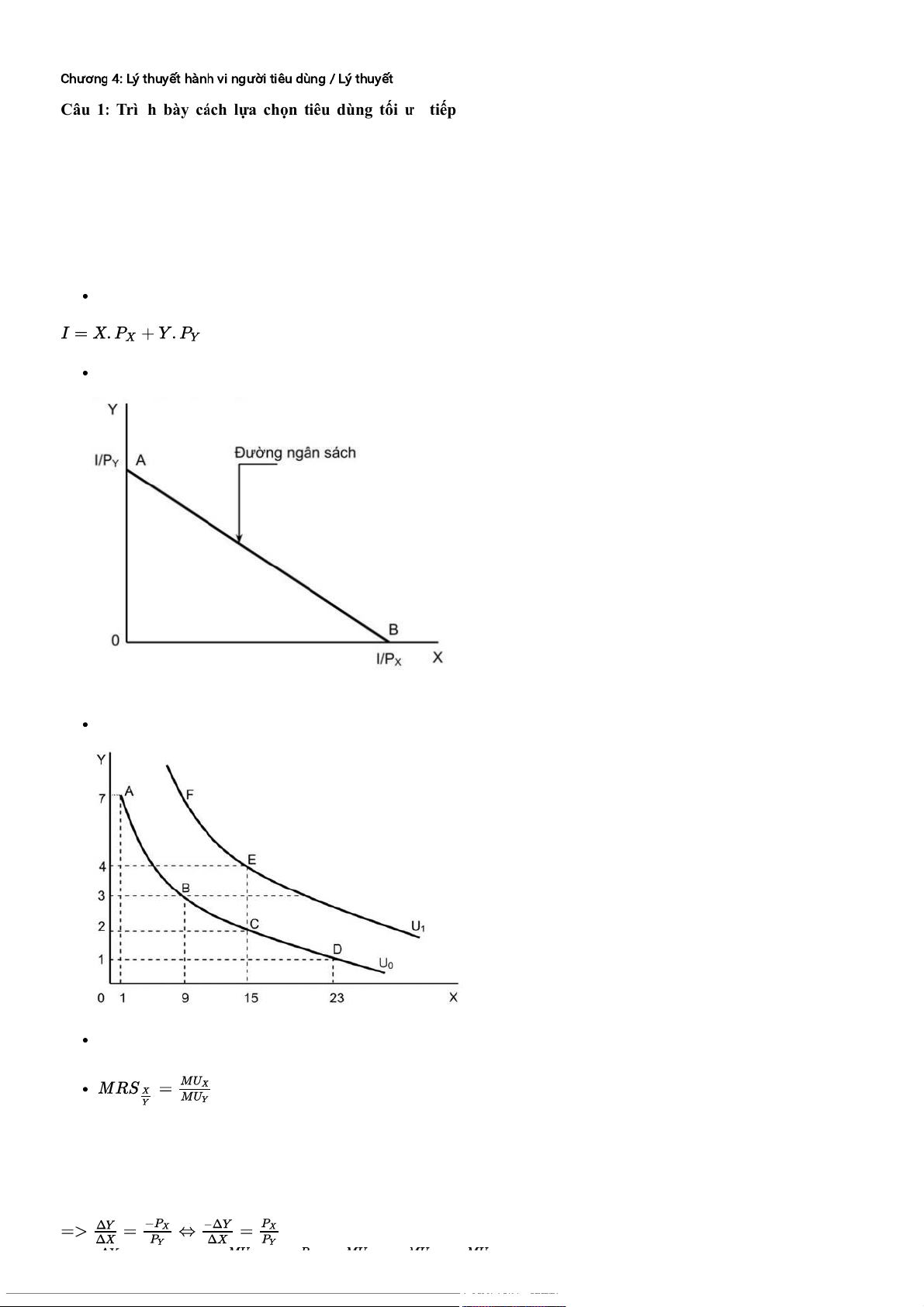 Câu 1: Trình bày cách lựa chọn tiêu dùng tối ưu tiếp cận từ đường ngân sách và đường bàng quan. Tại sao