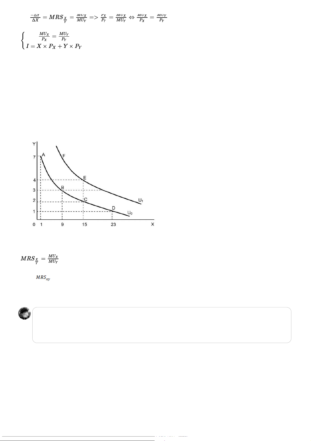 Khi di chuyển từ A đến B : X tăng, Y giảm. Mặt khác theo quy luật lợi ích cận biên giảm dần=> MUx giảm, MUy tăng
