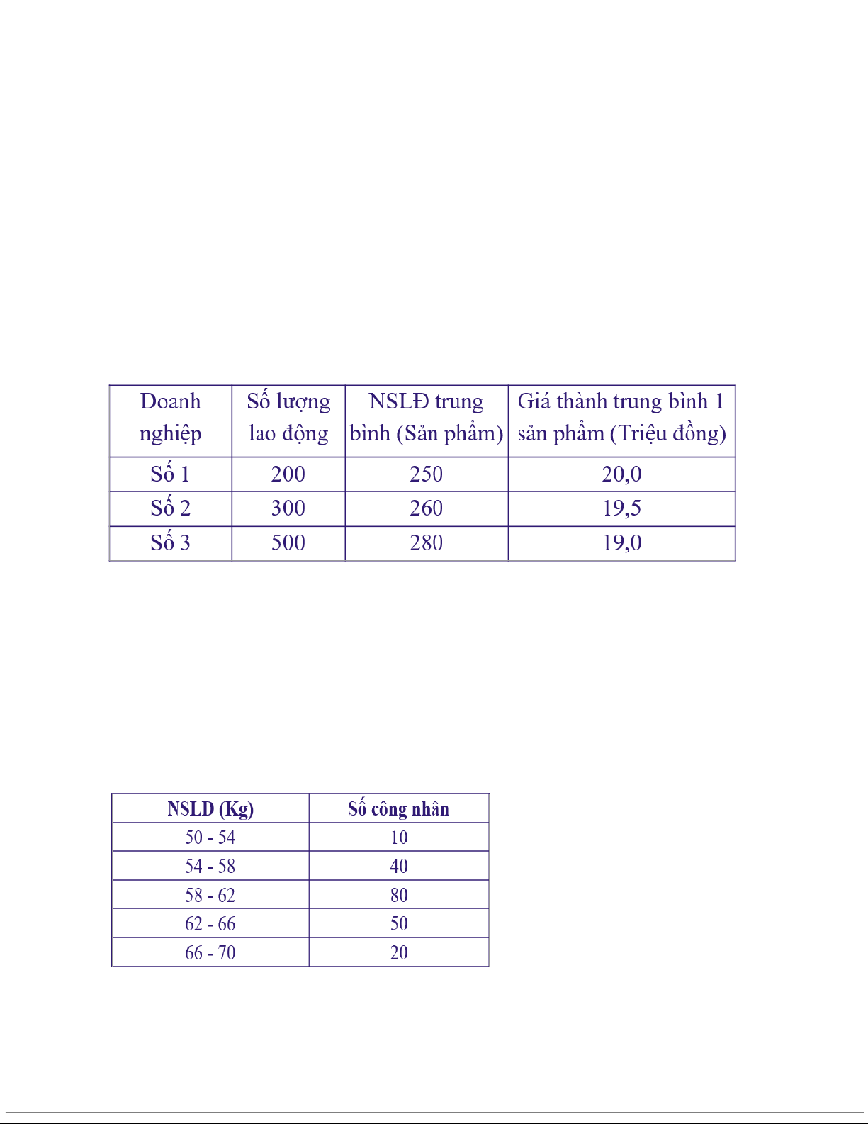 Câu 3 Có tài liệu về năng suất lao động của công nhân và giá thành đơn vị sản phẩm tại 3 doanh
