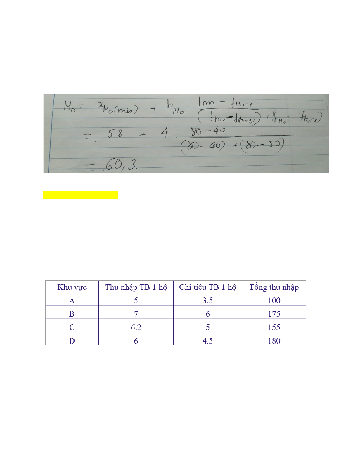 câu 5Có tài liệu về tình hình về thu nhập và chi tiêu của các hộ trong 4 khu vực tháng 5/X như sau (ĐVT: triệu đồng)