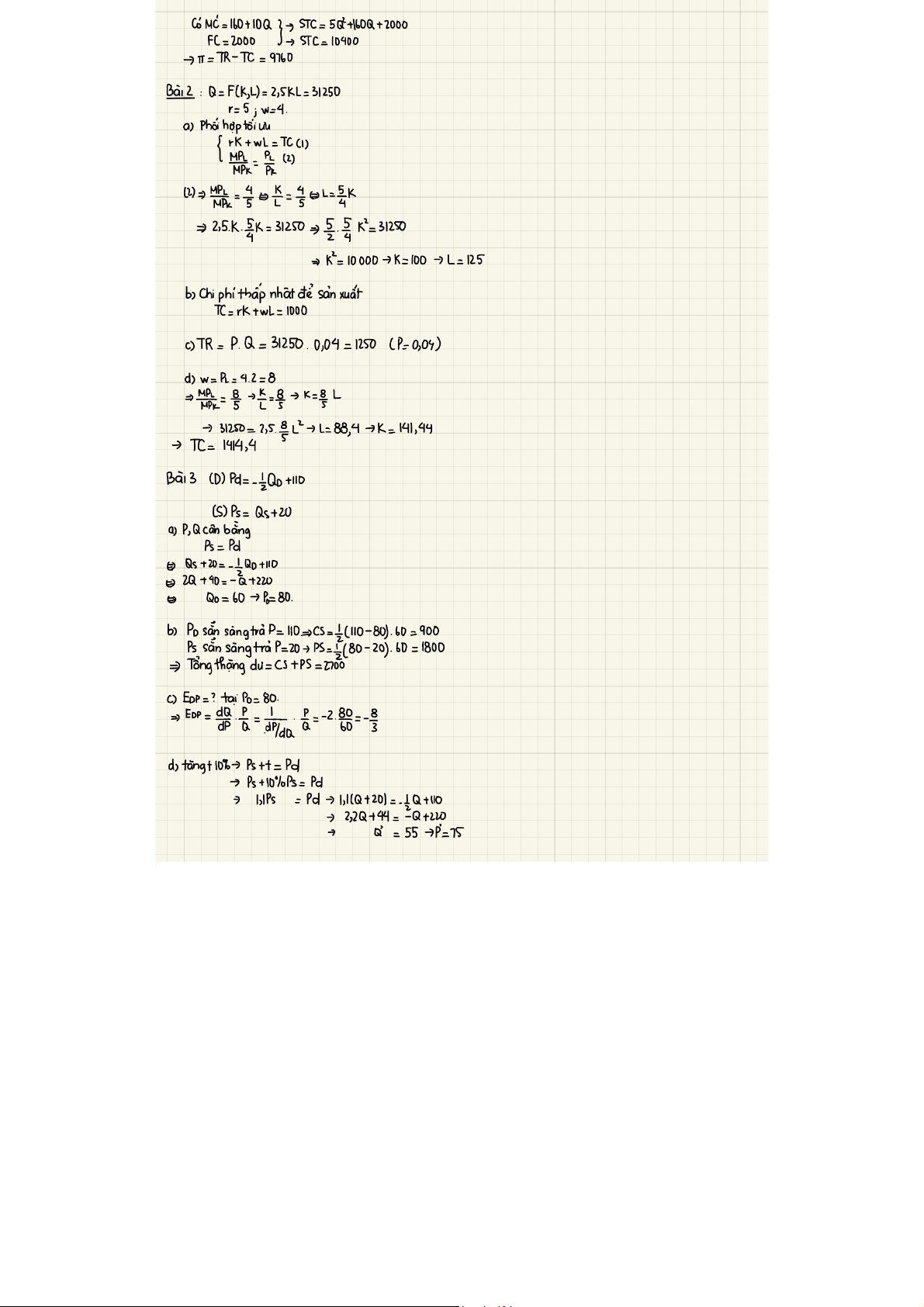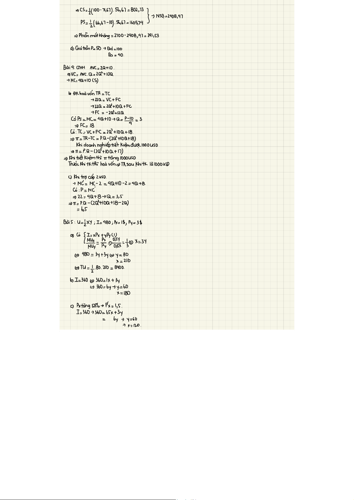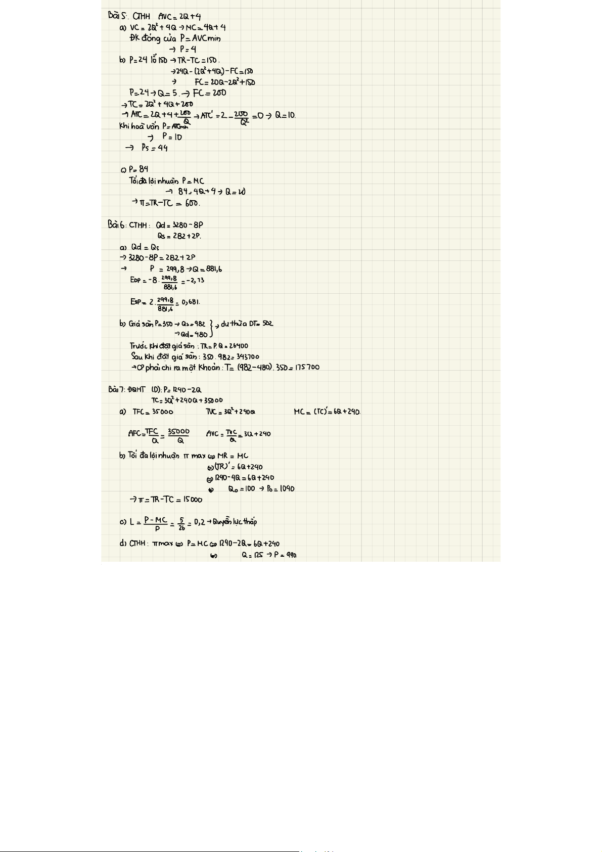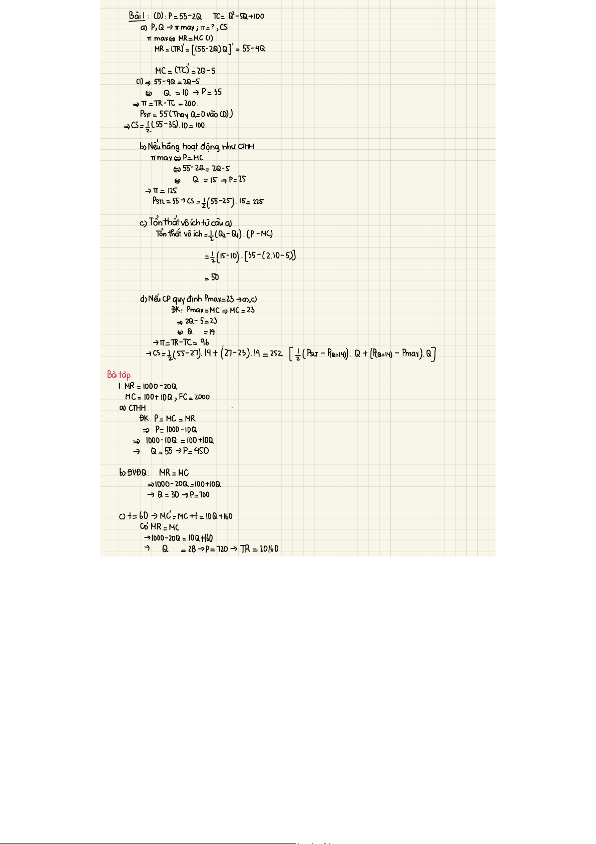 Bài Tập Chương 5,6,7,8 môn Kinh tế vi mô | Trường Đại học Kinh Tế Quốc Dân