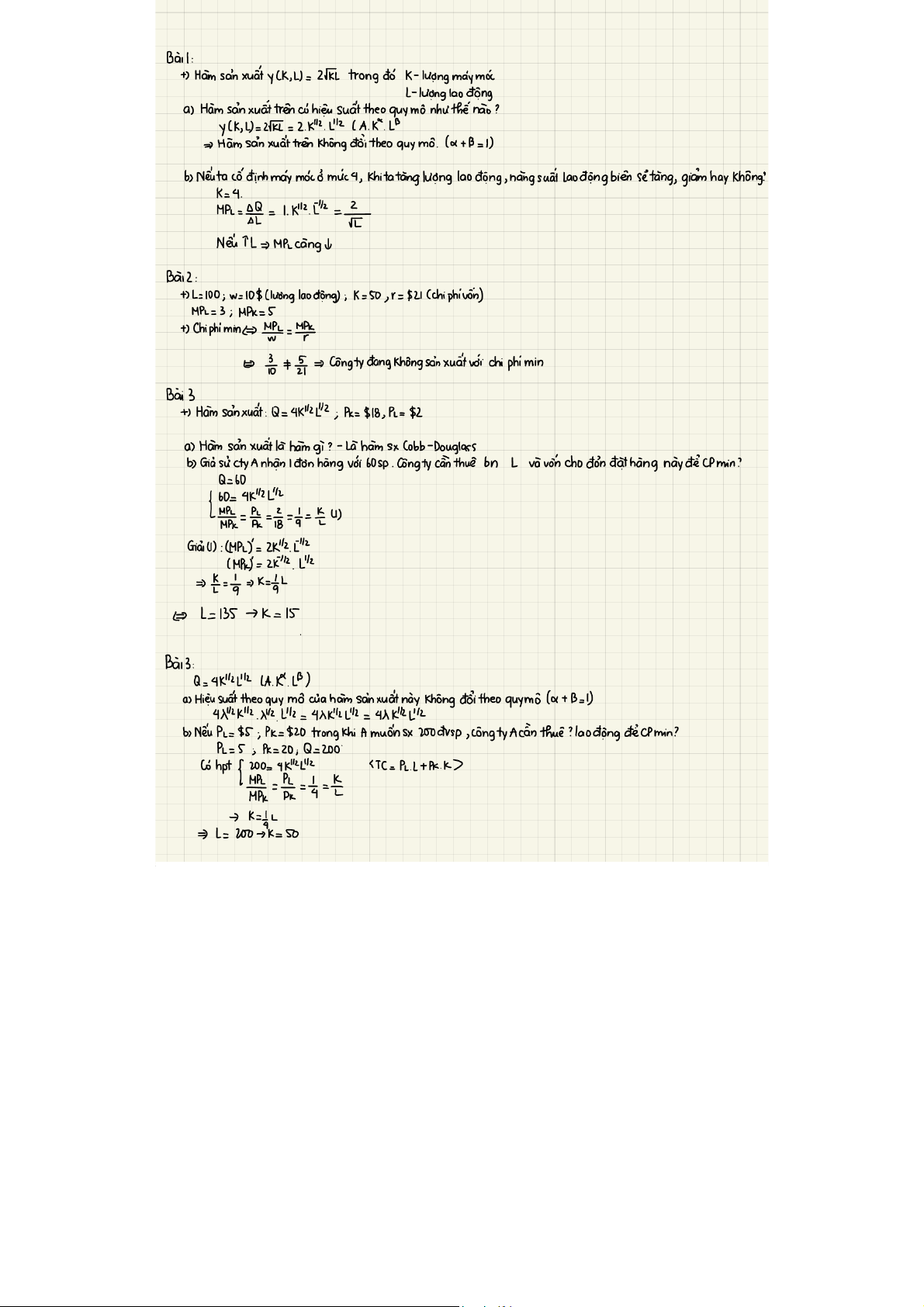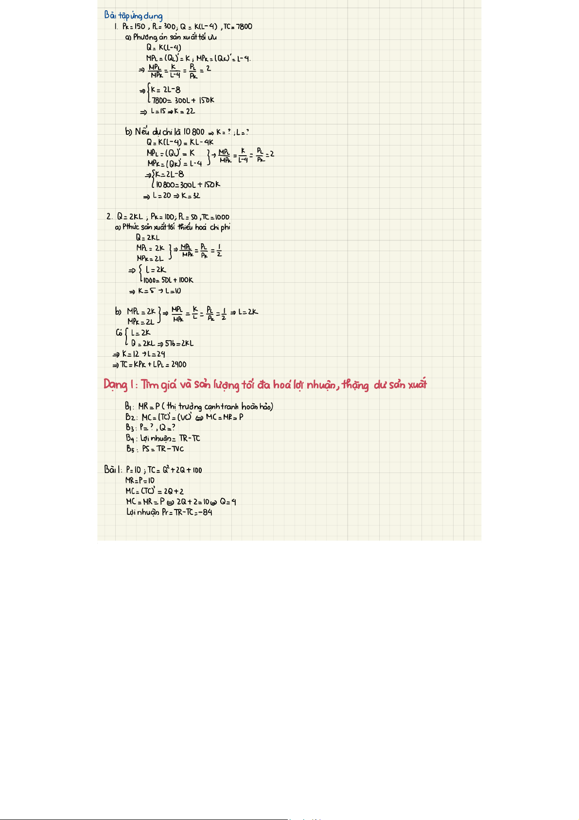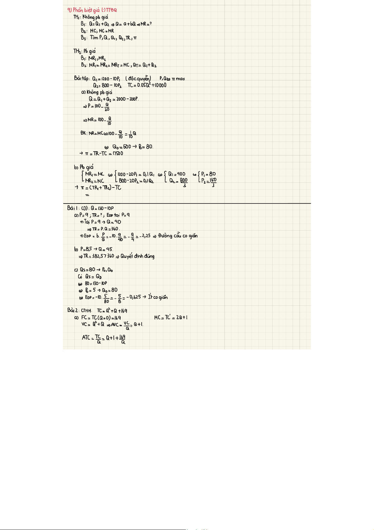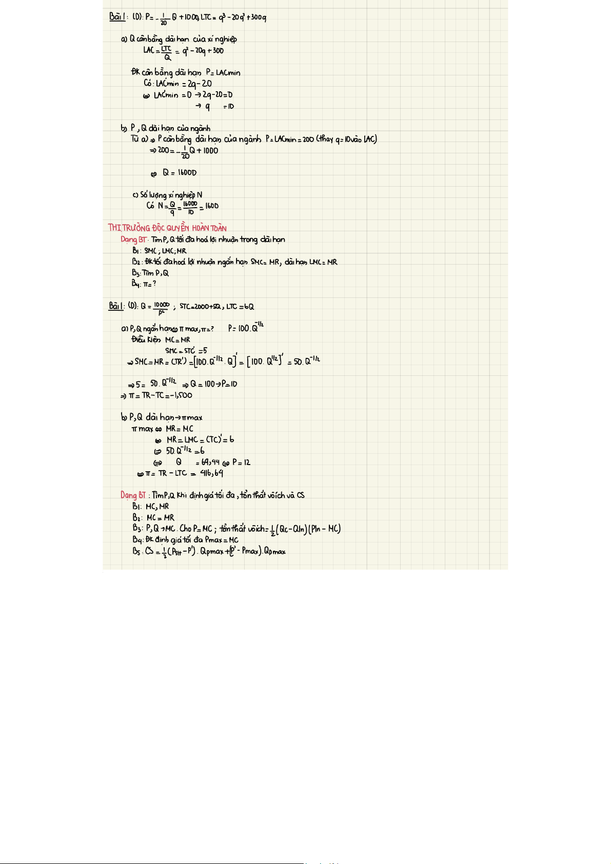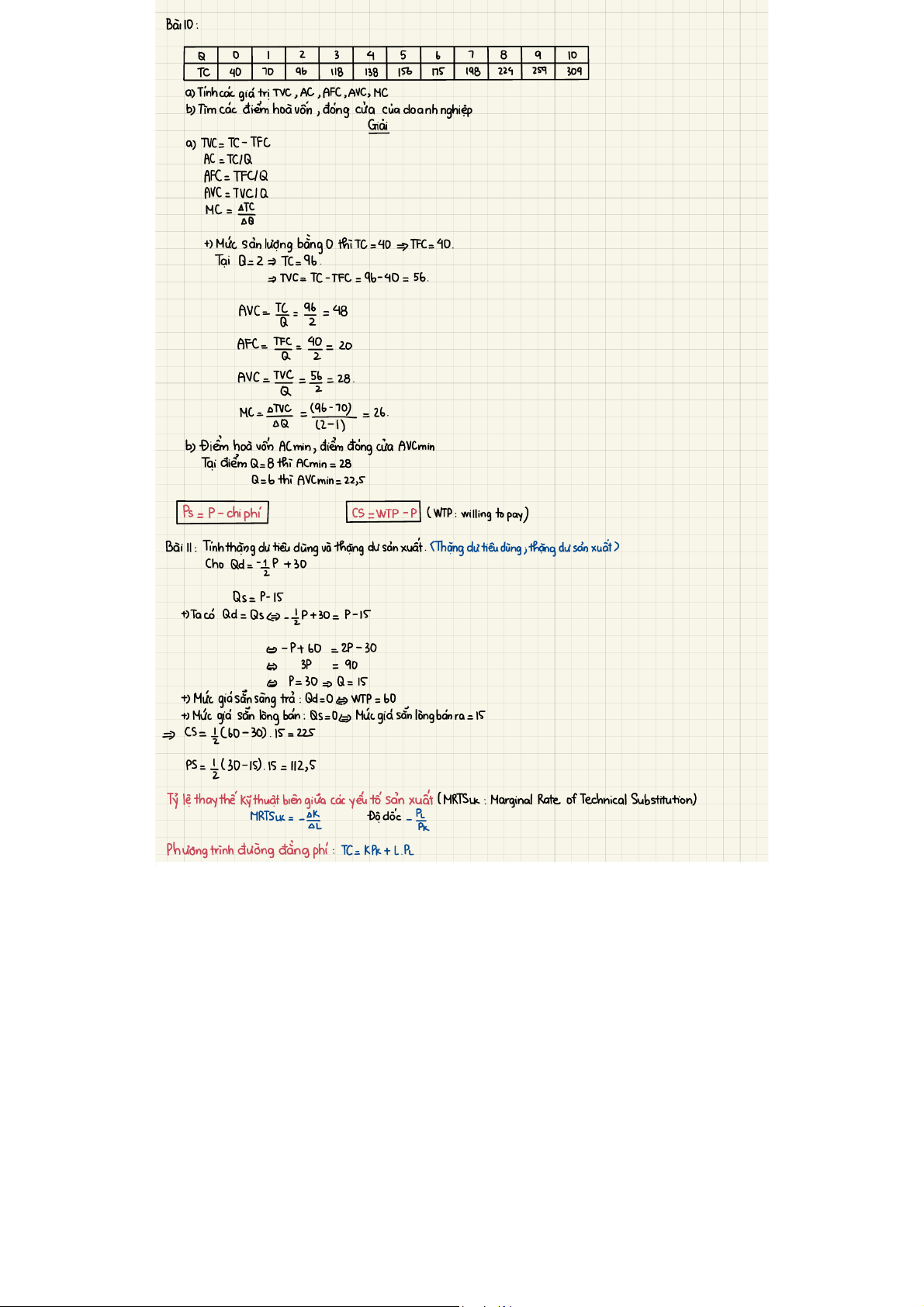 Bài Tập Chương 5,6,7,8 môn Kinh tế vi mô | Trường Đại học Kinh Tế Quốc Dân