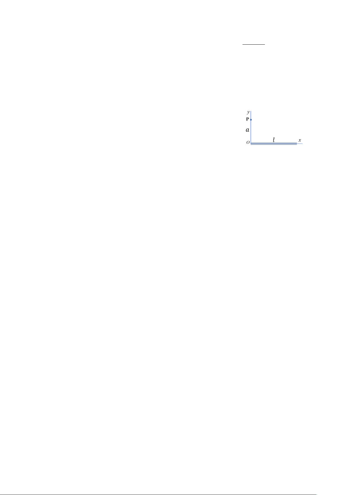 . Tính điện thế tại điểm P nằm trên trục oy, cách đầu thanh một đoạn a 5cm. Cho k = 9.109 N.m2/C2.