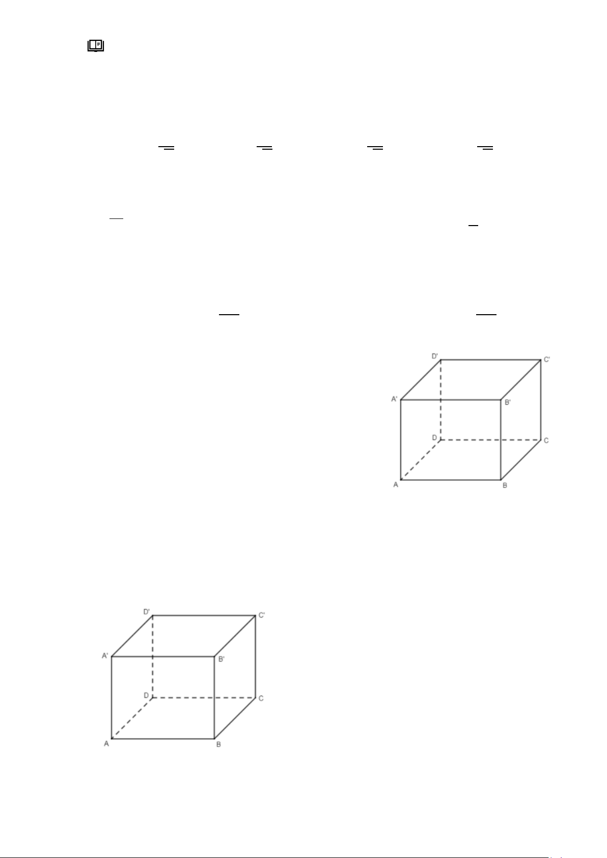 với gốc O, các vectơ 𝐴𝐵 ⃗⃗⃗ , 𝐴𝐷 ⃗⃗⃗ , 𝐴 ⃗⃗𝐴 ⃗⃗ ′