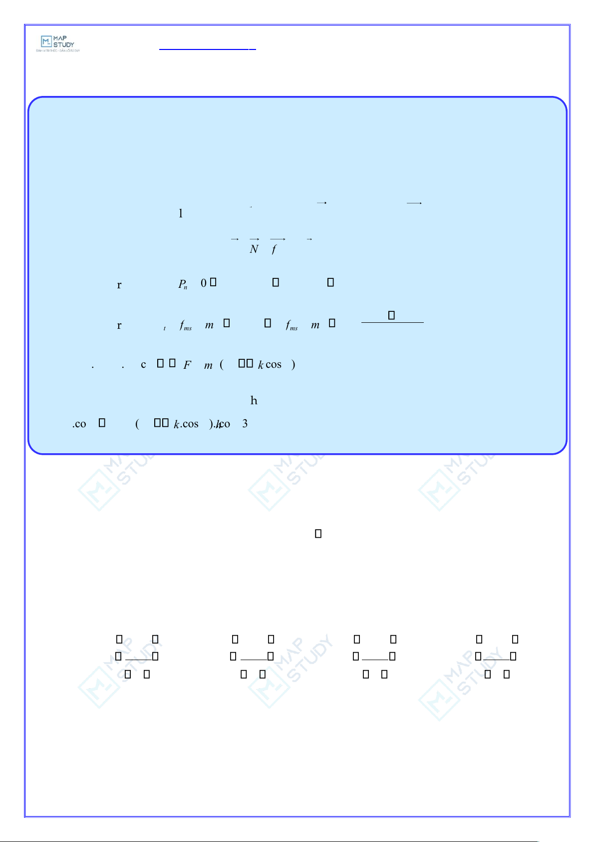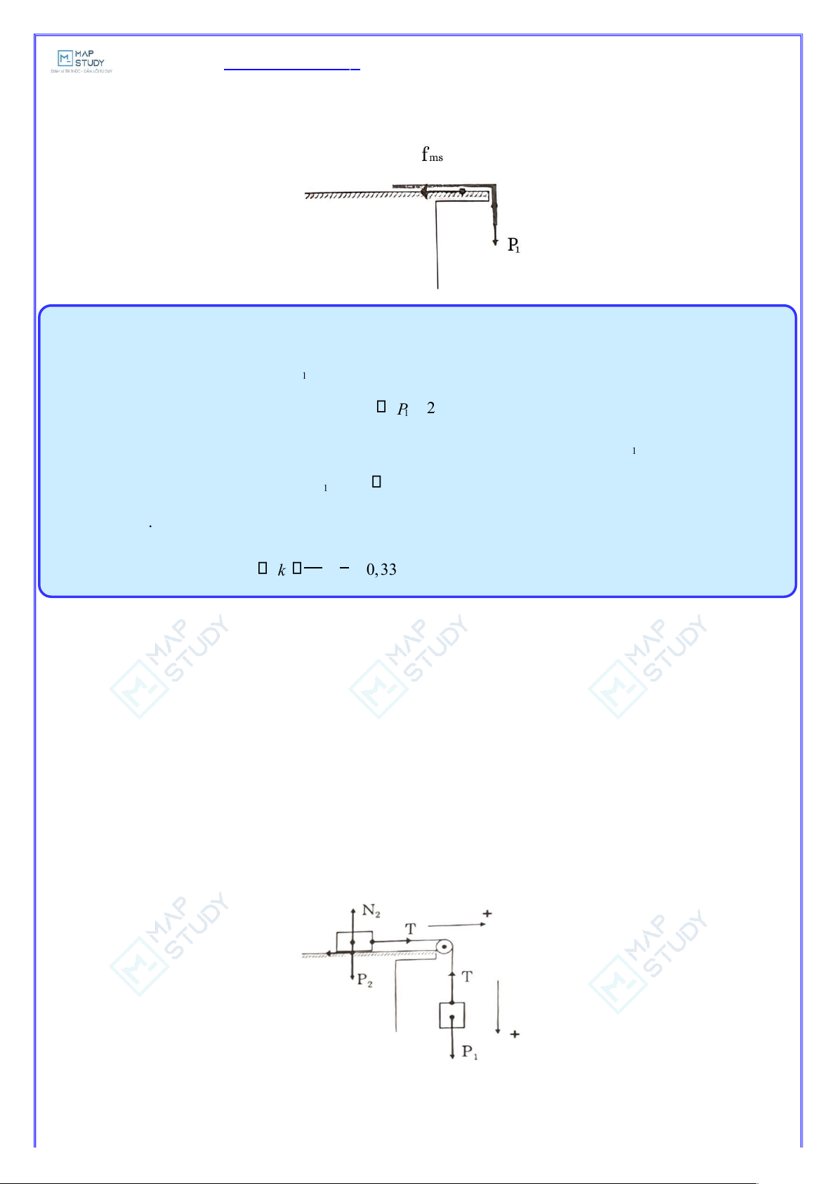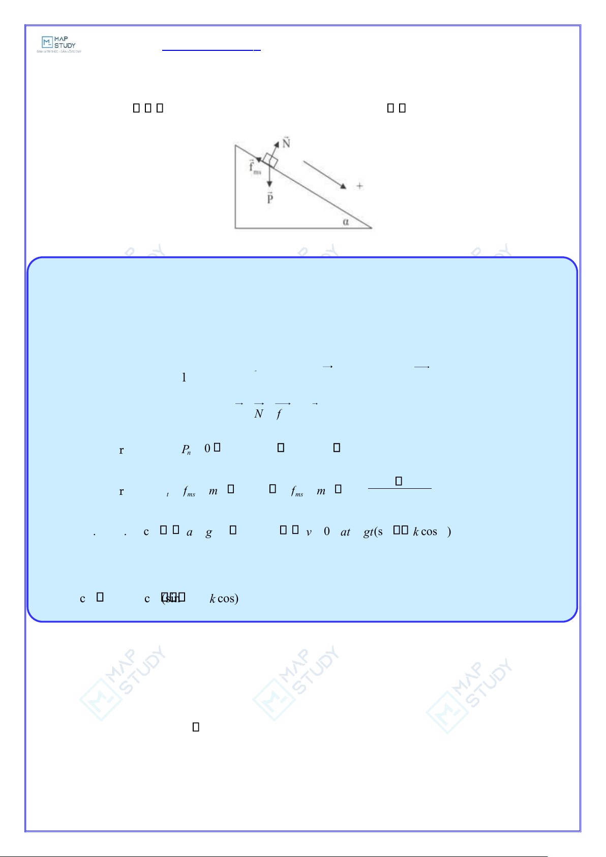 ục Oy : P − f = ma .sin −= = t P ms ms fms ma a m M f = . = = − ms kN k. mg cos F mg sin ( k c os ) Mmen t ổ ng h ợ p cÆc v ật t ắ c d ụ ng lŒn ch