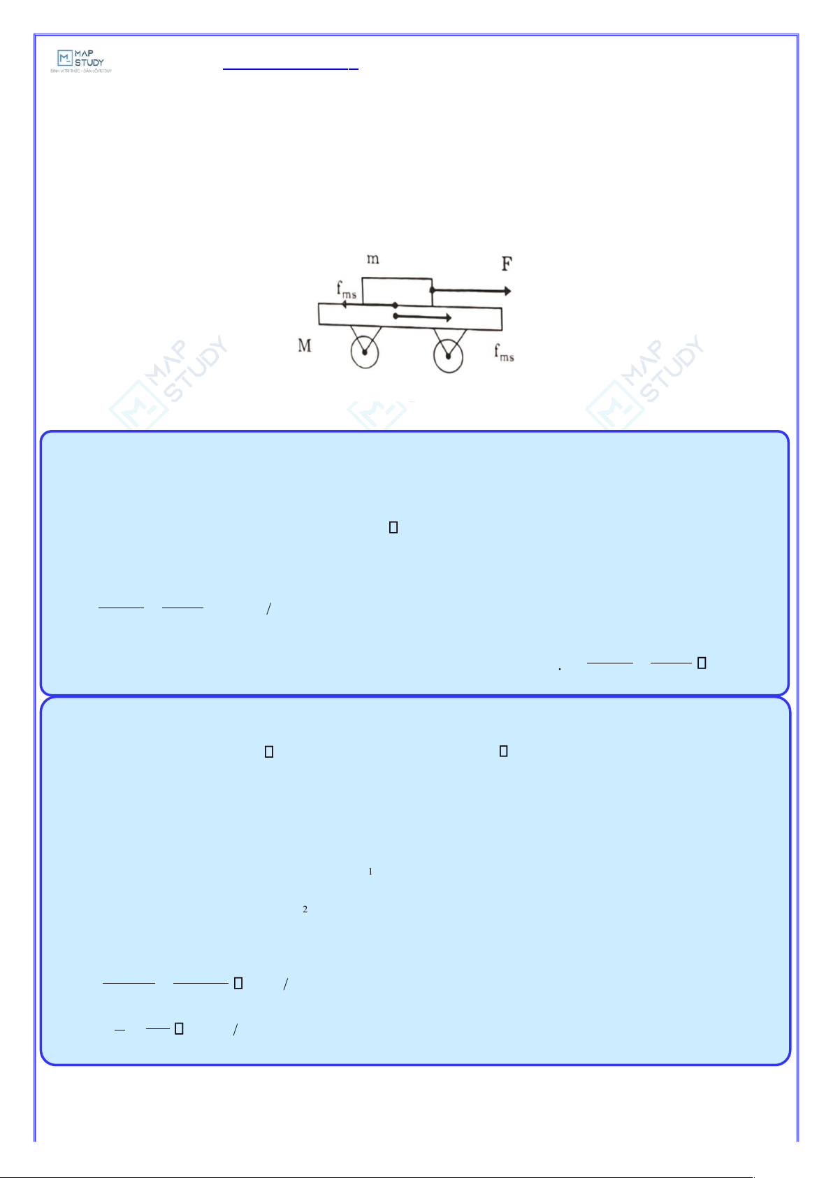 là lực ma sát giữa xe và hòn đá . Xét riêng xe ta có: ms Ma 18 N M +m 20 +2