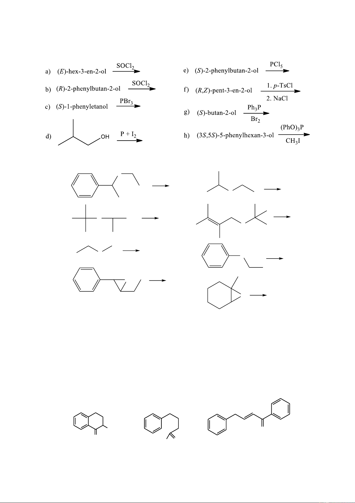 Bài 4: Hoàn thành phản ứng to a) Ph CH2 CH CH CH3 + Cl2 AS + Br2 b) O to c) + N Br O CH3COOOH d) + SO2Cl2 2