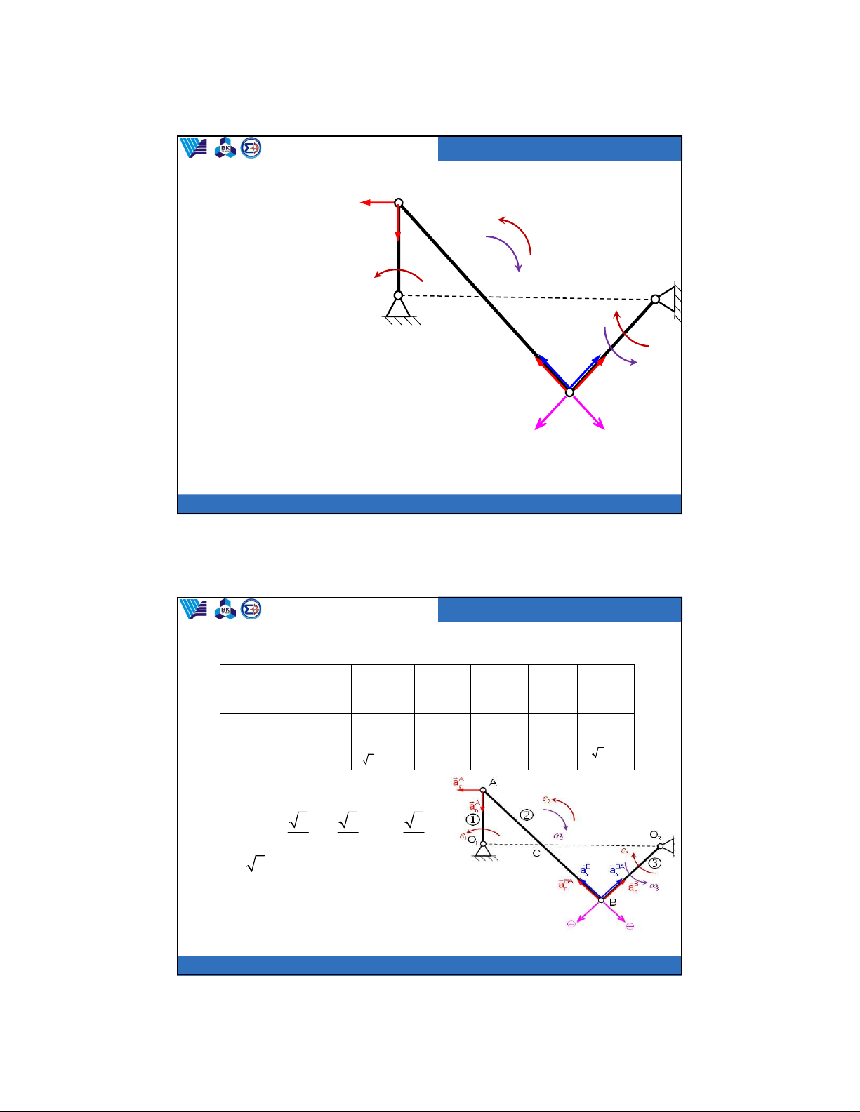 Trường đại học Bách Khoa Bộ môn Cơ kỹ thuật A a A A a 2 n O O 1 2 2 1 Gia tốc góc của C 3 thanh lắc O2B: B BA a a 2 B BA a B 2 2 a B a O . B 0,5 s n a 2 3 3 n 3 O B 2 2 B