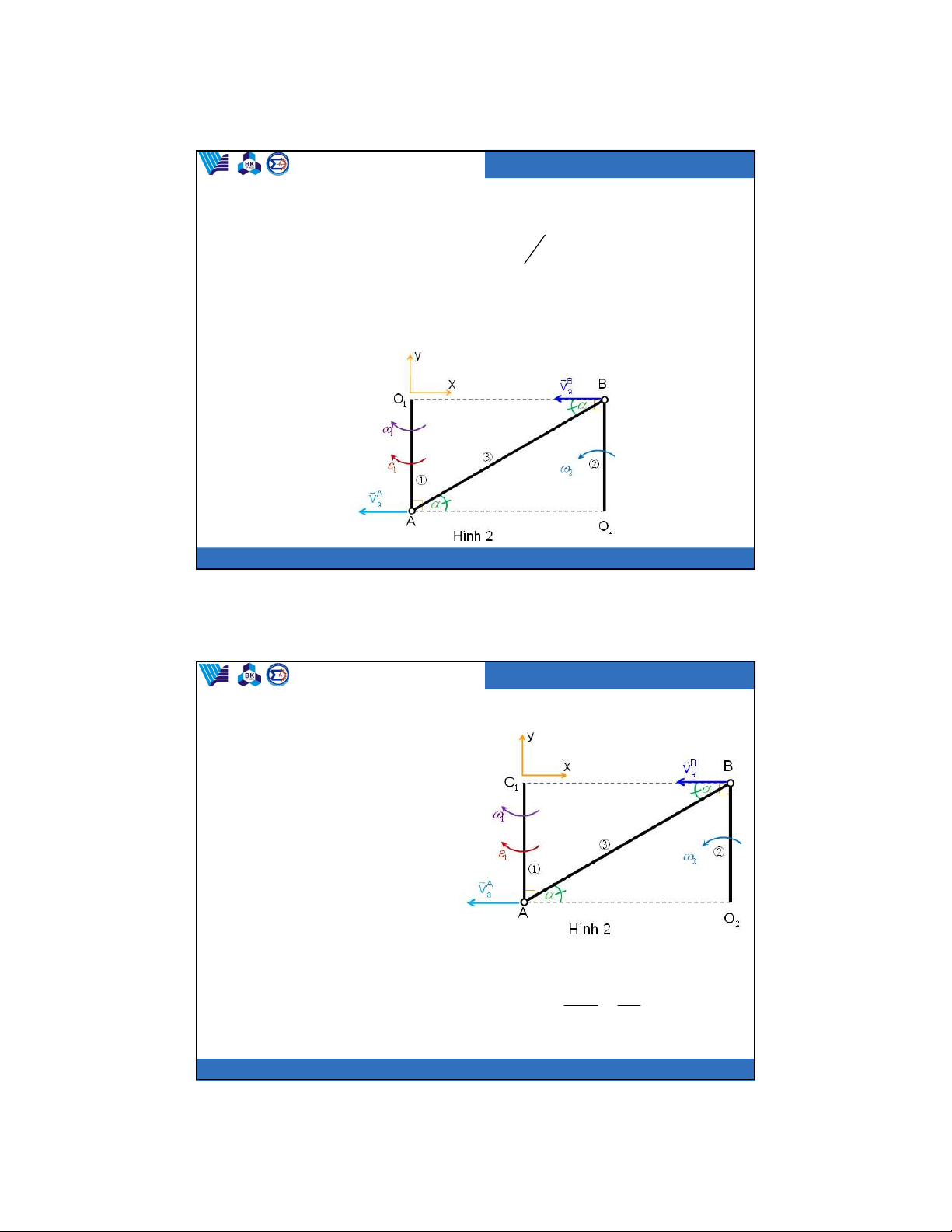 Trường đại học Bách Khoa Bộ môn Cơ kỹ thuật b. Bài toán vận tốc y A va A 1 O B x va B Hình 2 A