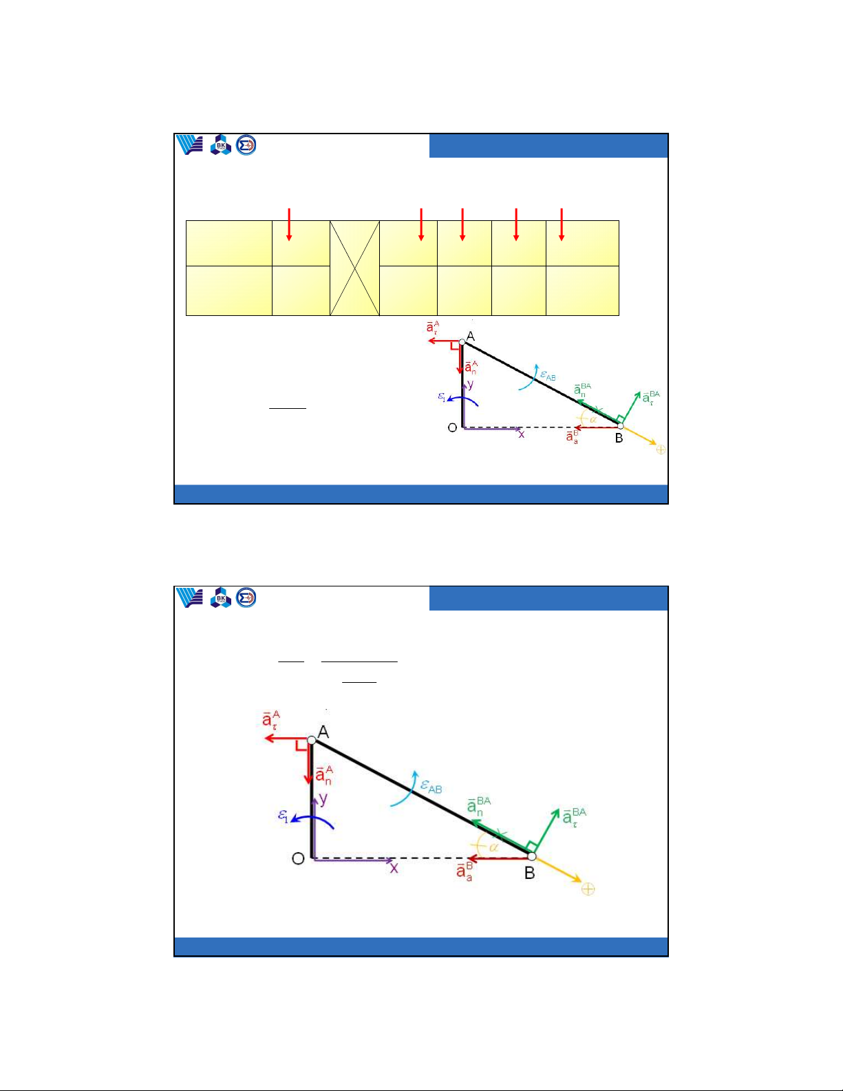 Chọn A làm cực để tính gia tốc điểm B. (1) B A B A a a a A A a a BA BA a a a a n n Phương //x OA AO AB BA Chiều 2 Độ lớn ? . . 1 1 ? A . B AB 0