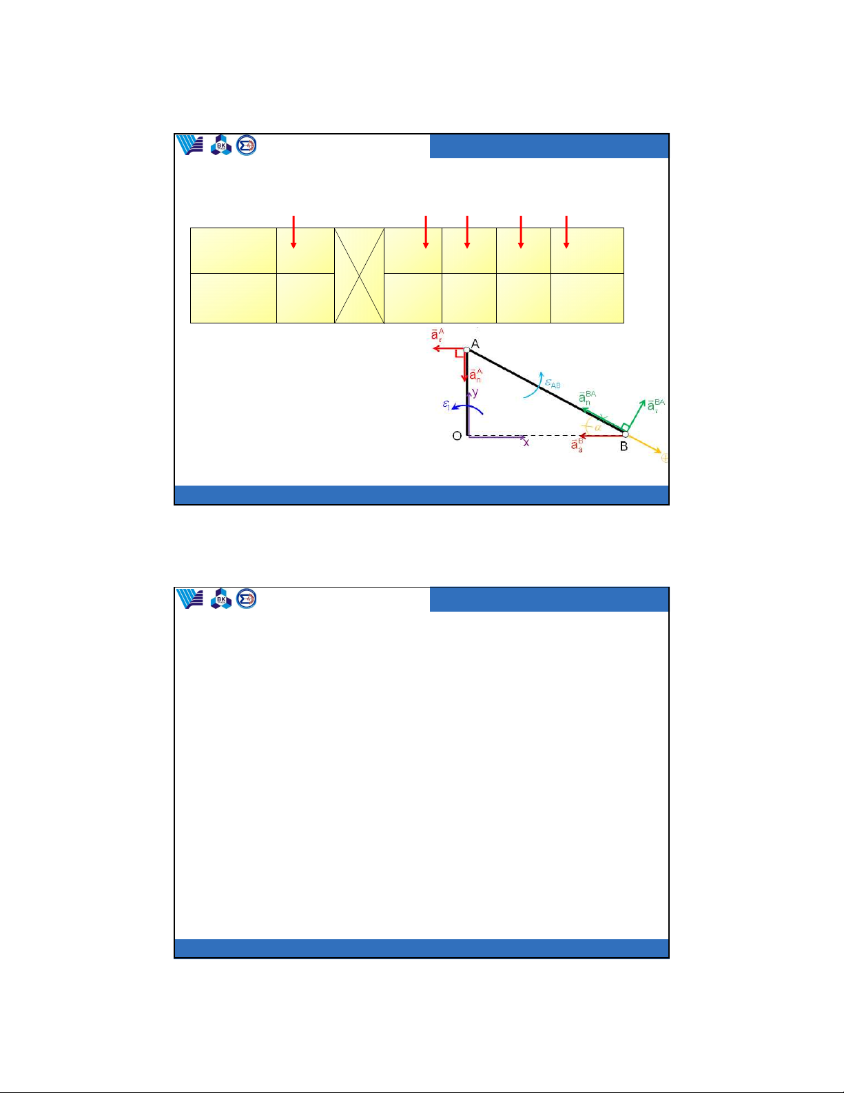 Trường đại học Bách Khoa Bộ môn Cơ kỹ thuật A a A A a 2 n Chọn A làm cực O O 1 2 2 để tính gia tốc 1 C 3 điểm B thuộc B BA a a thanh AB: BA B A BA A A BA BA a B n a a a a a a a a a a n n , (1) n 3 B