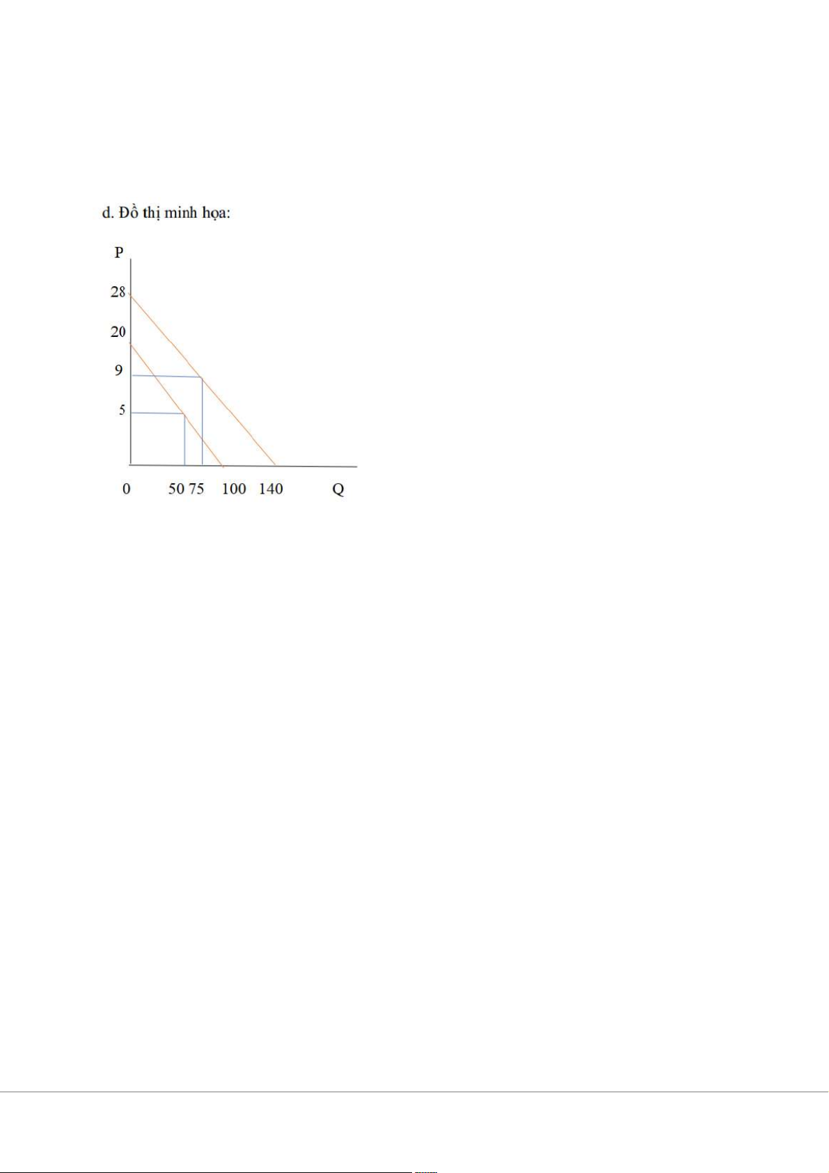 → Trên thị trường xuất hiện trạng thái thiếu hụt hàng hóa e. 𝑄𝐷 = 100 - 𝑃