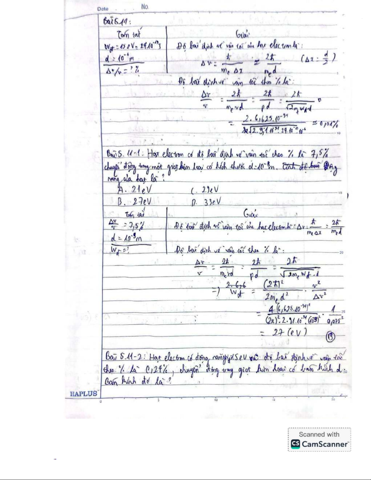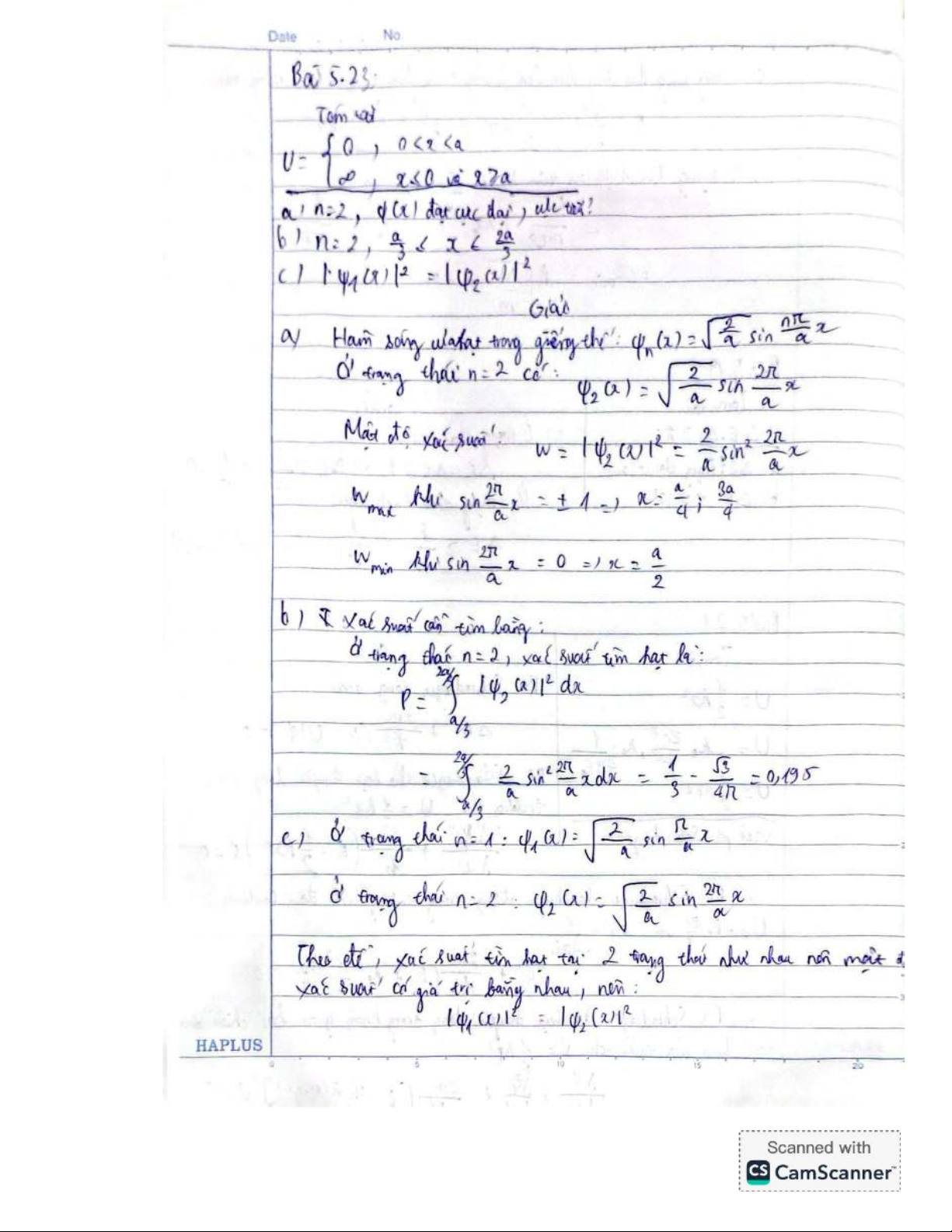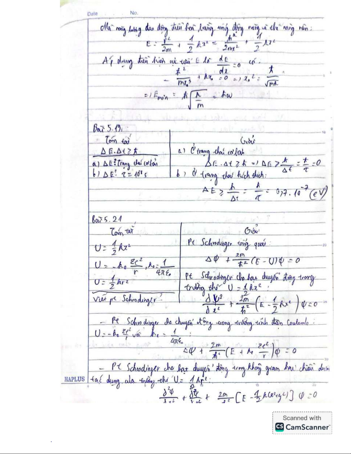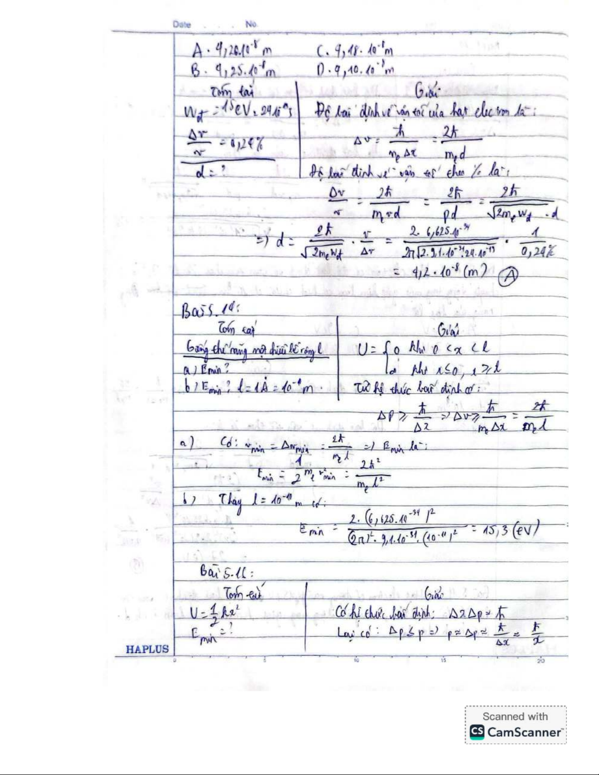 Bài Tập Cơ Học Lượng Tử: Đề Thi HAPLUS 10 | Cơ học lượng tử | Trường Đại học Khoa học Tự nhiên, Đại học Quốc gia Hà Nội