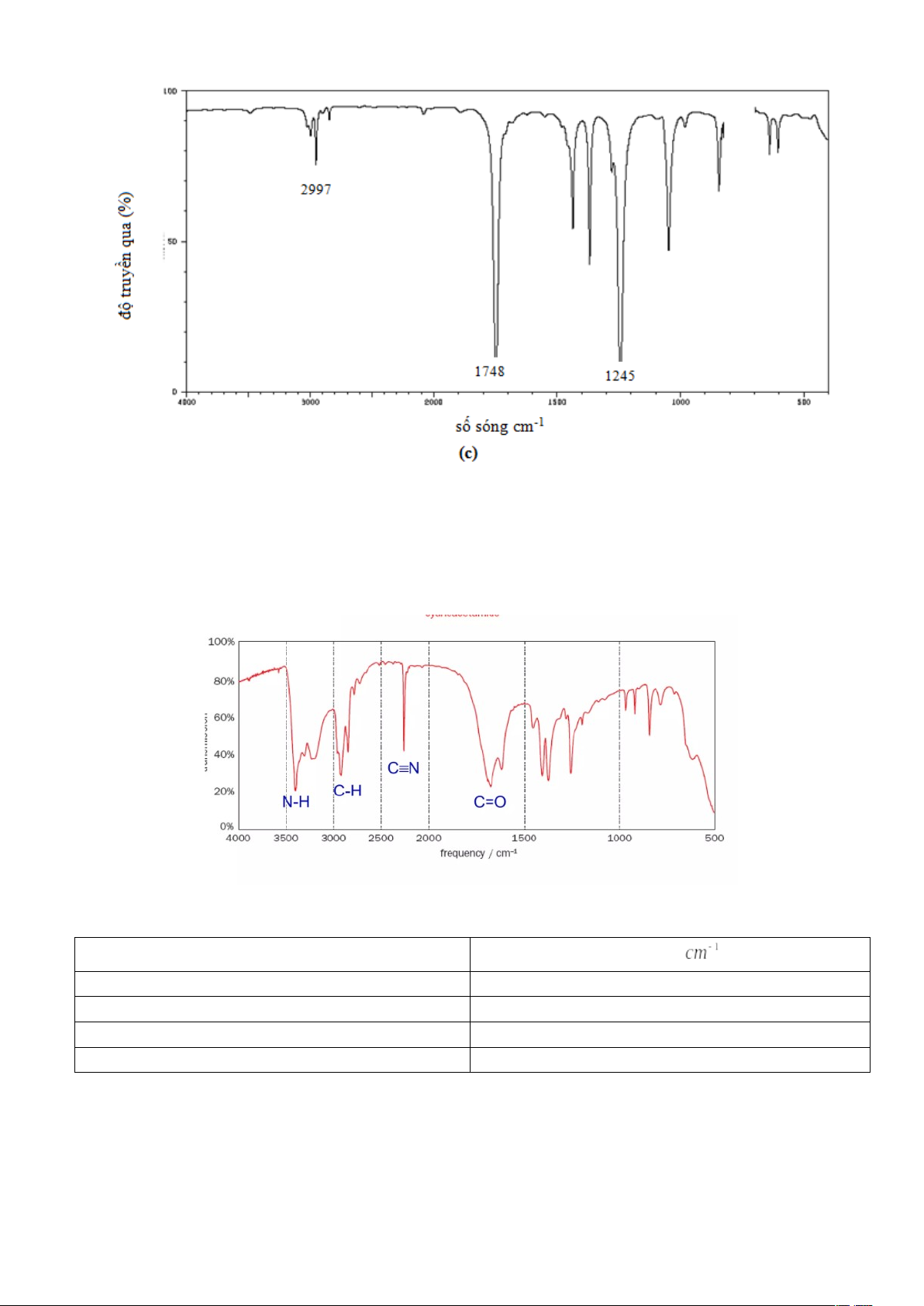 Câu 4: Phổ hồng ngoại thể hiện các hấp thụ bức xạ điện từ trong vùng hồng ngoại của các liên kết trong