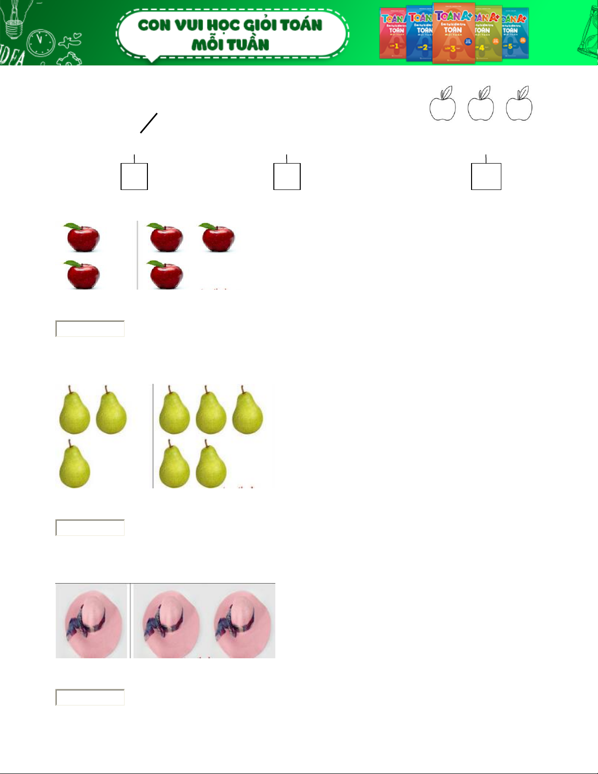 Quan sát tranh và điền số vào chỗ (....) để được so sánh đúng. 3 < ...... Câu 7: