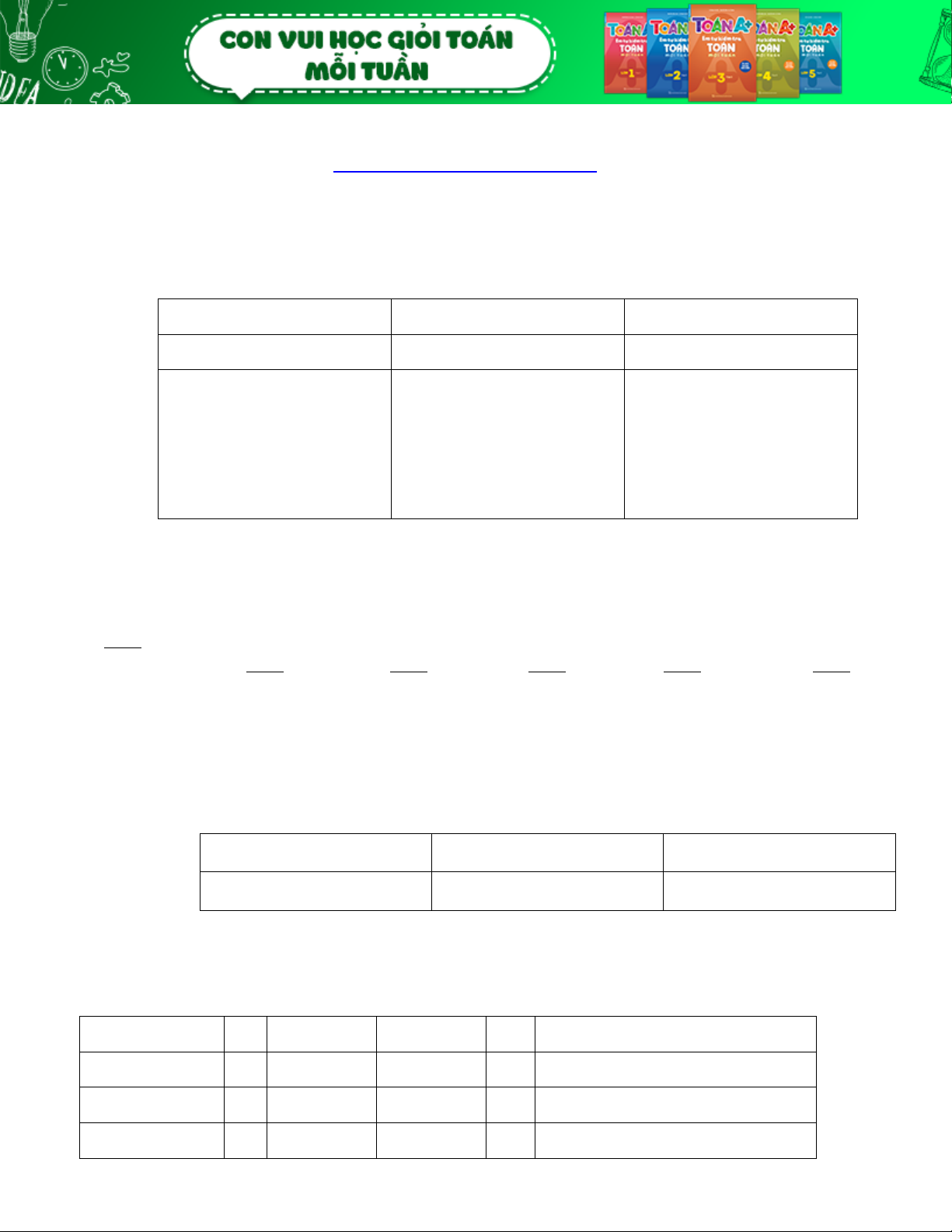 BÀI TẬP CUỐI TUẦN 3 Môn Toán
