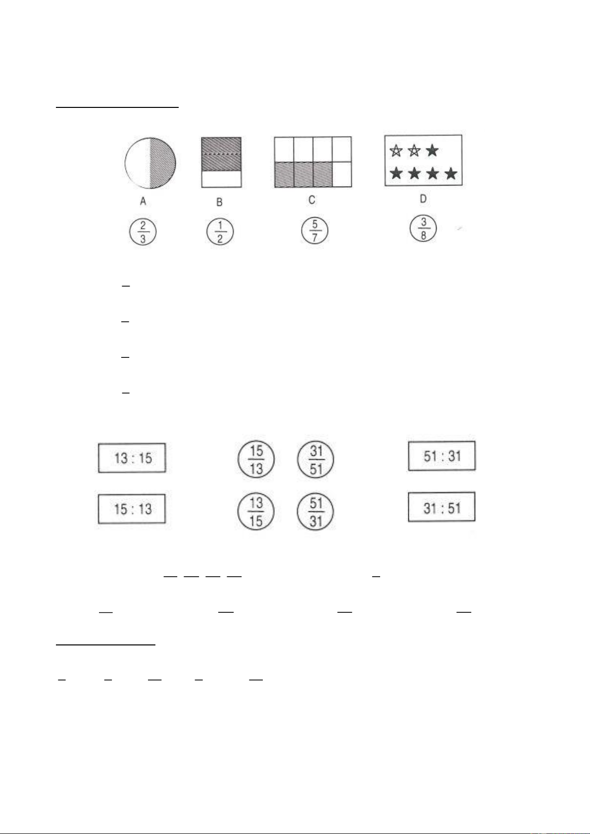 Câu 1. Nối mỗi hình với phân số chỉ phần tô đậm của hình đó: