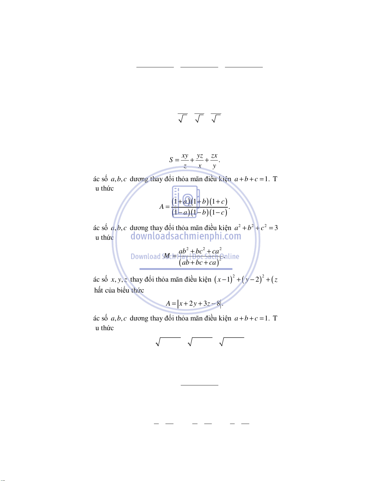x + y + z = 1. Tìm giá trị nhỏ nhất của biểu thức xy yz zx S = + + . z x y I.34. Cho các số , a ,